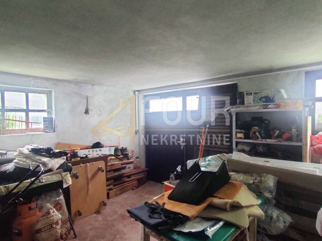 On the ground floor there is a living room with a kitchen, a bathroom, a pantry, a garage and a storage room, while on the first floor there are three bedrooms, a bathroom and an additional room with access to a covered terrace.