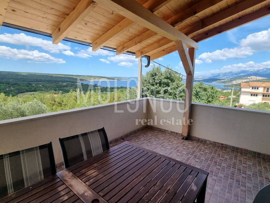 Upstairs, there is a kitchen with a dining area, two bedrooms, a bathroom, and a living room with access to a spacious terrace that offers a stunning sea view.