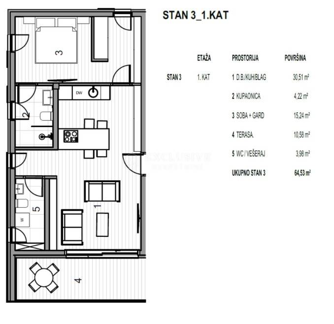 Flat Krk, 64,53m2