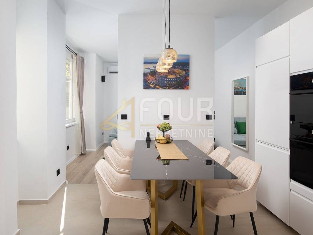 For sale: a modernly renovated apartment with a total area of 67.65 m², in an excellent location – right in the center of Pula and in the immediate vicinity of the Arena! It consists of two bedrooms, a kitchen with dining area, a living room, a storage room, a bathroom, and a hallway. The apartment’s special value lies in the terrace and the shared garden area available for use by the owners. It was completely renovated in 2023 and is being sold fully equipped with all furniture. Thanks to its location, it is an excellent property also as an investment for rental!