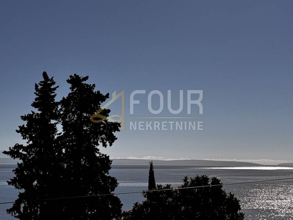 An attractive building plot of 994 m² for sale in Opatija, located in the second row from the sea, offering an exceptional panoramic view of the sea and nearby islands.