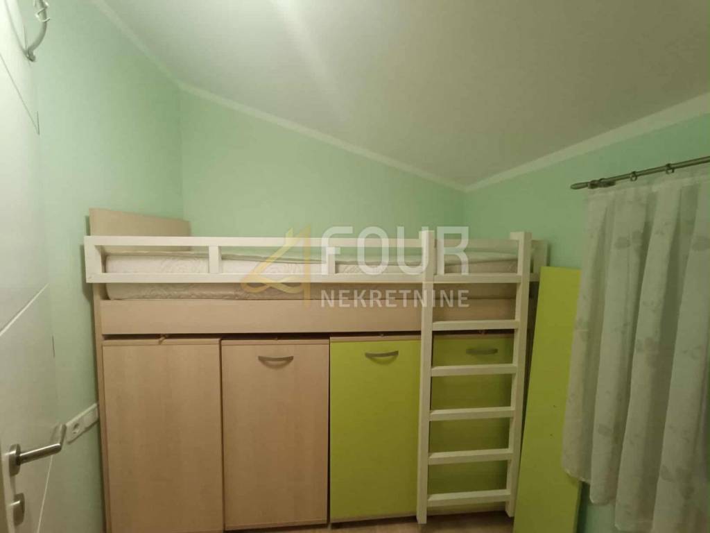On the ground floor there is an entrance area, on the first floor a living room with kitchen and dining area, and an additional toilet, while in the attic there are two bedrooms, each with its own bathroom. The children's room is more compact, while the master bedroom is very spacious. The apartment is south oriented, fully furnished and ready to move in.