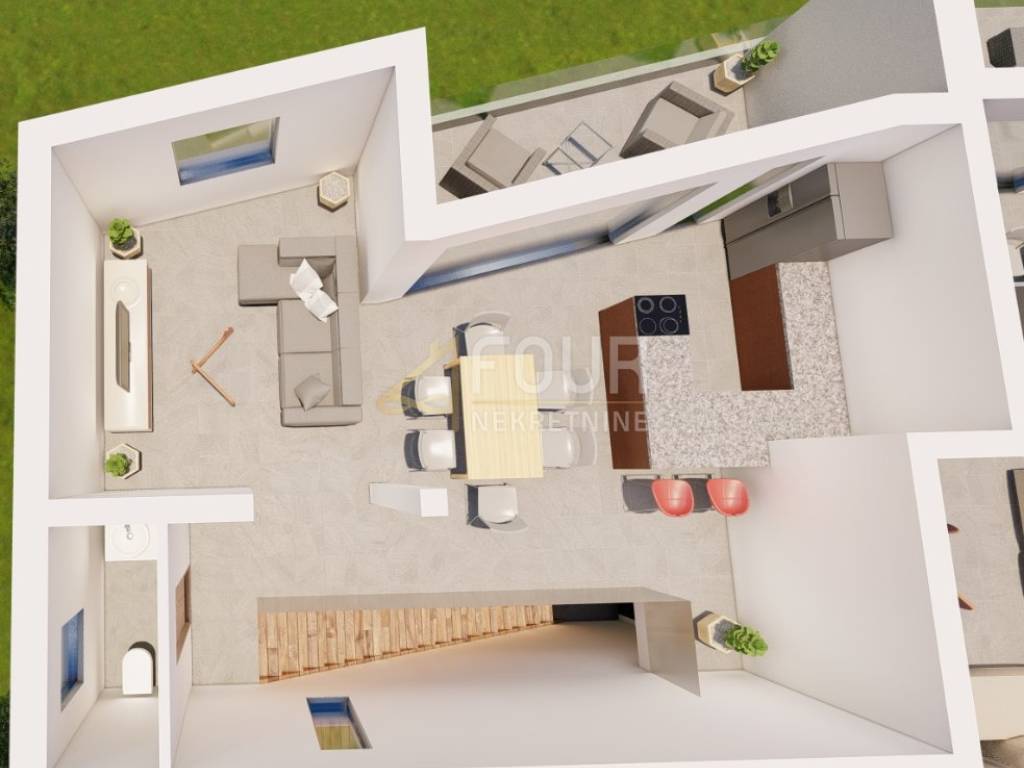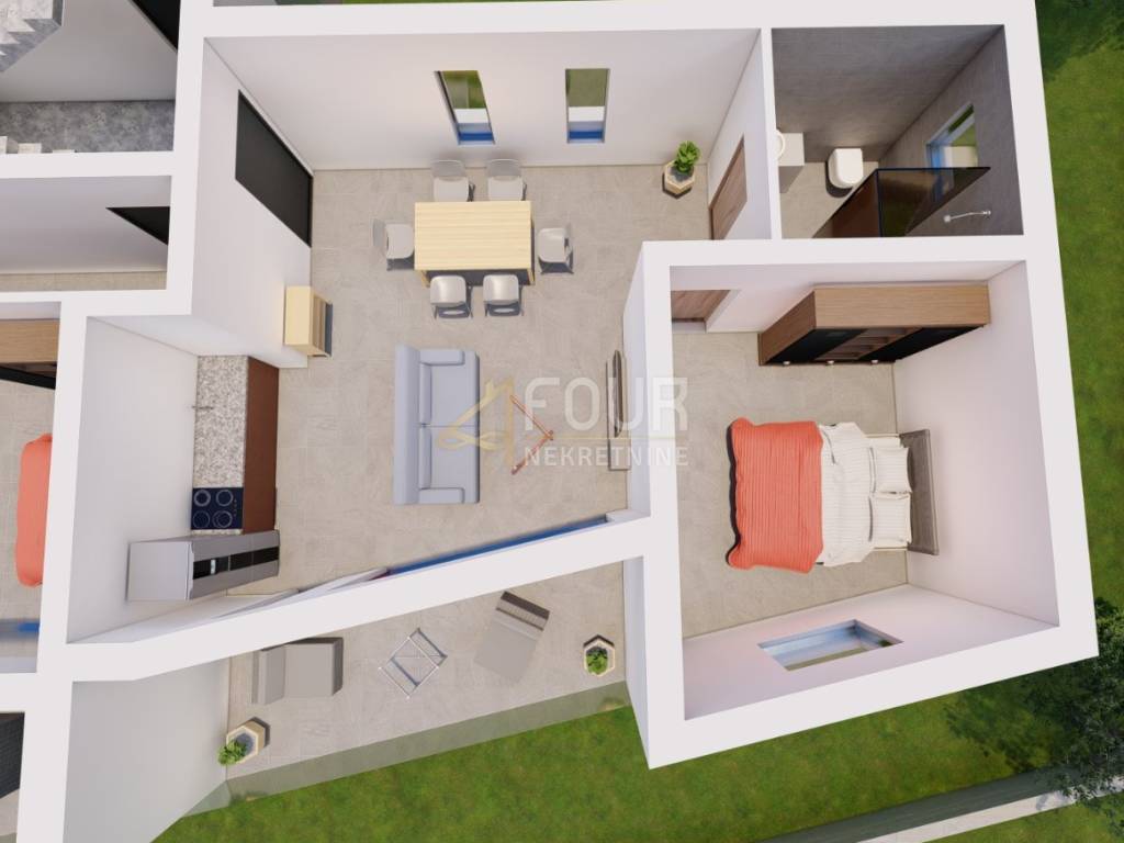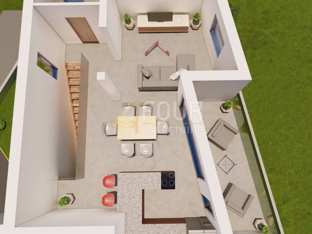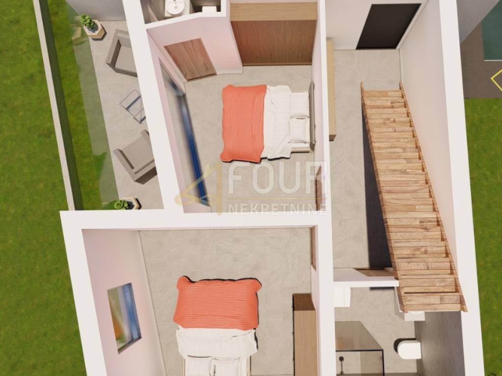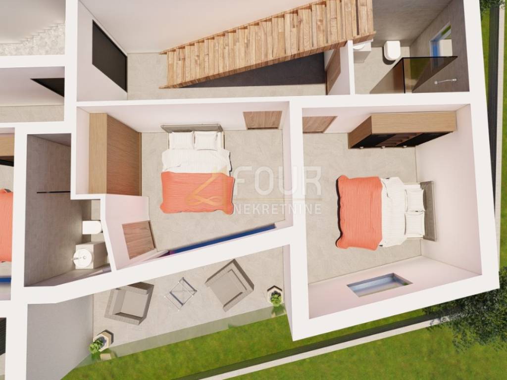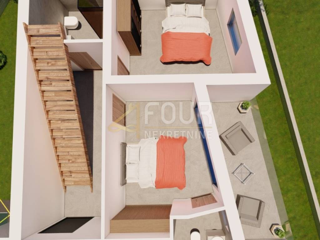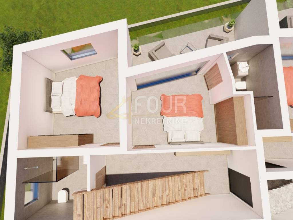 We offer a new construction 2 bedroom + living room in Ika with an area of 98.89 m2. On the first floor there are 2 rooms, each with its own bathroom and sea view. The terrace also has a sea view. On the second (last) floor there is a living room and a kitchen with a toilet and a terrace of the same dimensions as on the first floor with a roof exit to the roof terrace of 60 m2. The roof terrace has electricity and water. Suitable for a grill, jacuzzi and sunbathing area with an open view of the sea. This apartment has two parking spaces, one of which has a charger for an electric car. There is a possibility of building a swimming pool because the buyers of the other apartments want to have one and purchase up to 500 m2 of agricultural land in front of the apartment. The view of the sea from all rooms can be arranged by arrangement.
