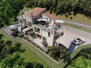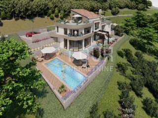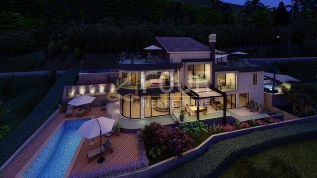 We offer a building plot of 903 m2 for the construction of a villa with a swimming pool and a beautiful panoramic view! The land has a valid building permit with paid utilities and works have been reported. The construction of a 330m2 luxury villa is planned. Ground floor: kitchen with dining room and living room in the open space, toilet, wellness, spa center, sauna, covered terrace and swimming pool. 1st floor: hall, 3 bedrooms, bathroom and terrace. High attic: entrance hall, laundry room, office with access to a large terrace.