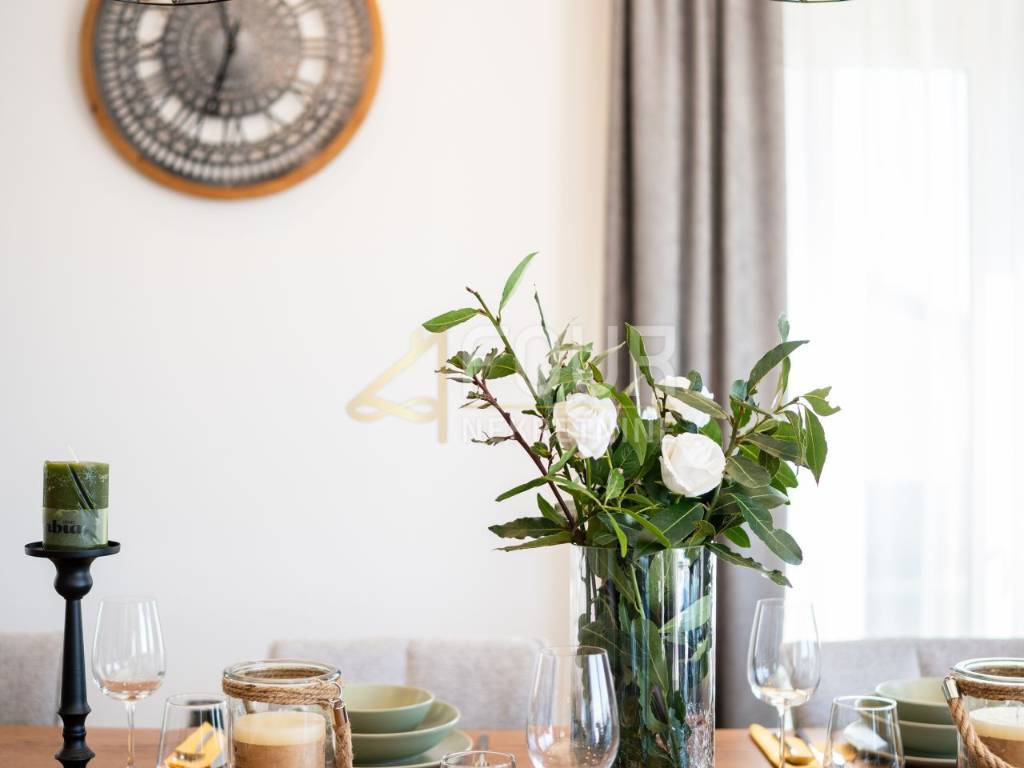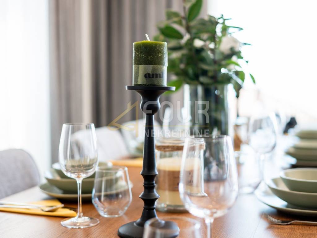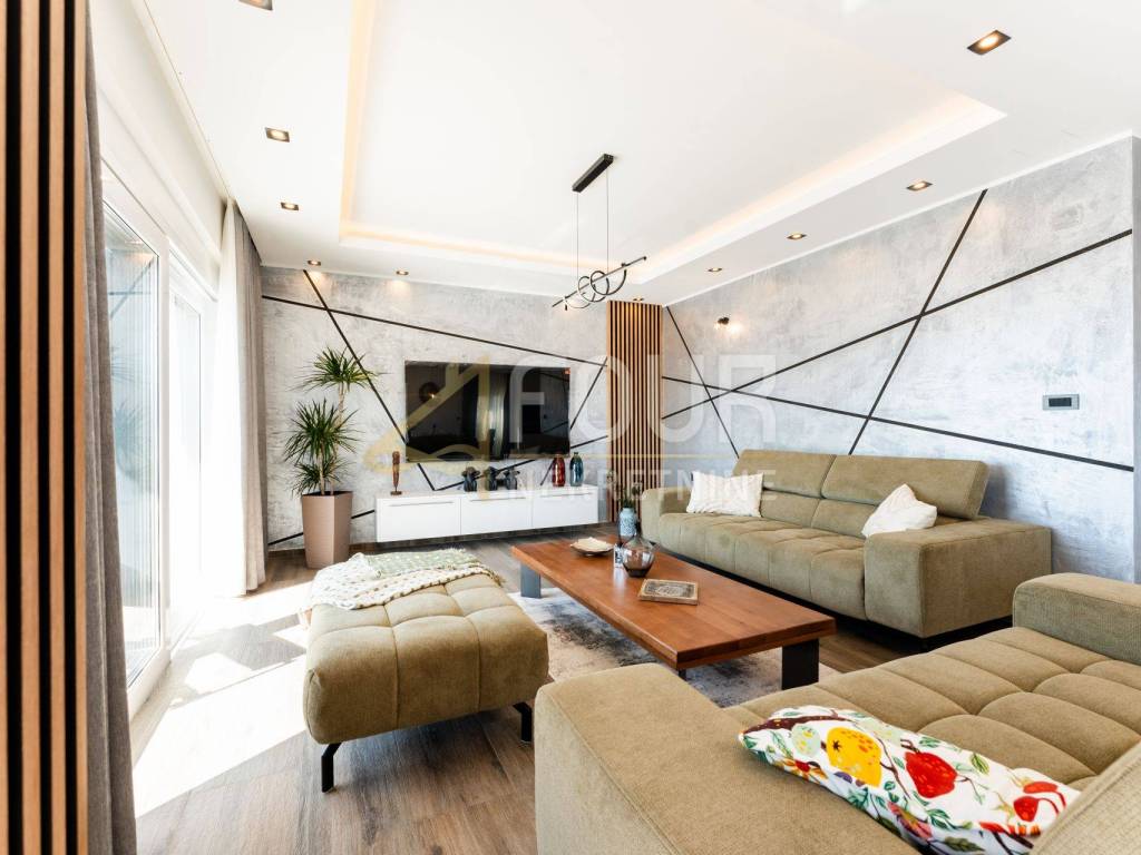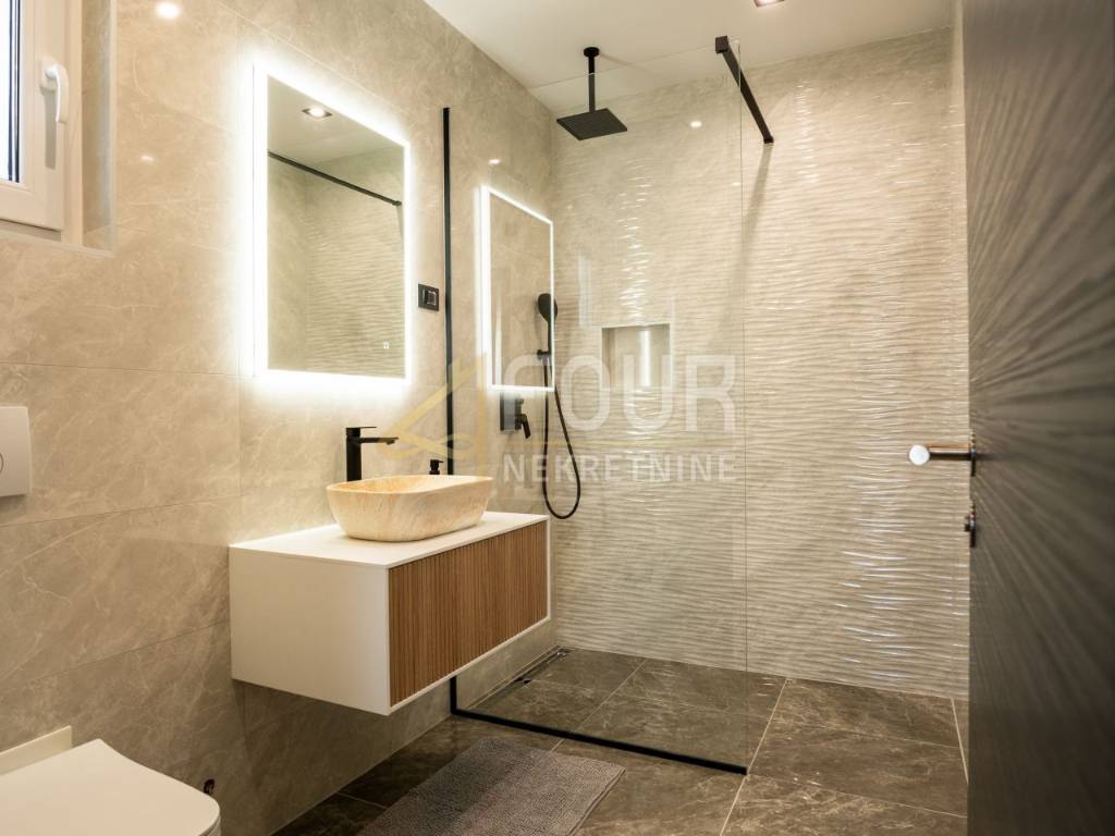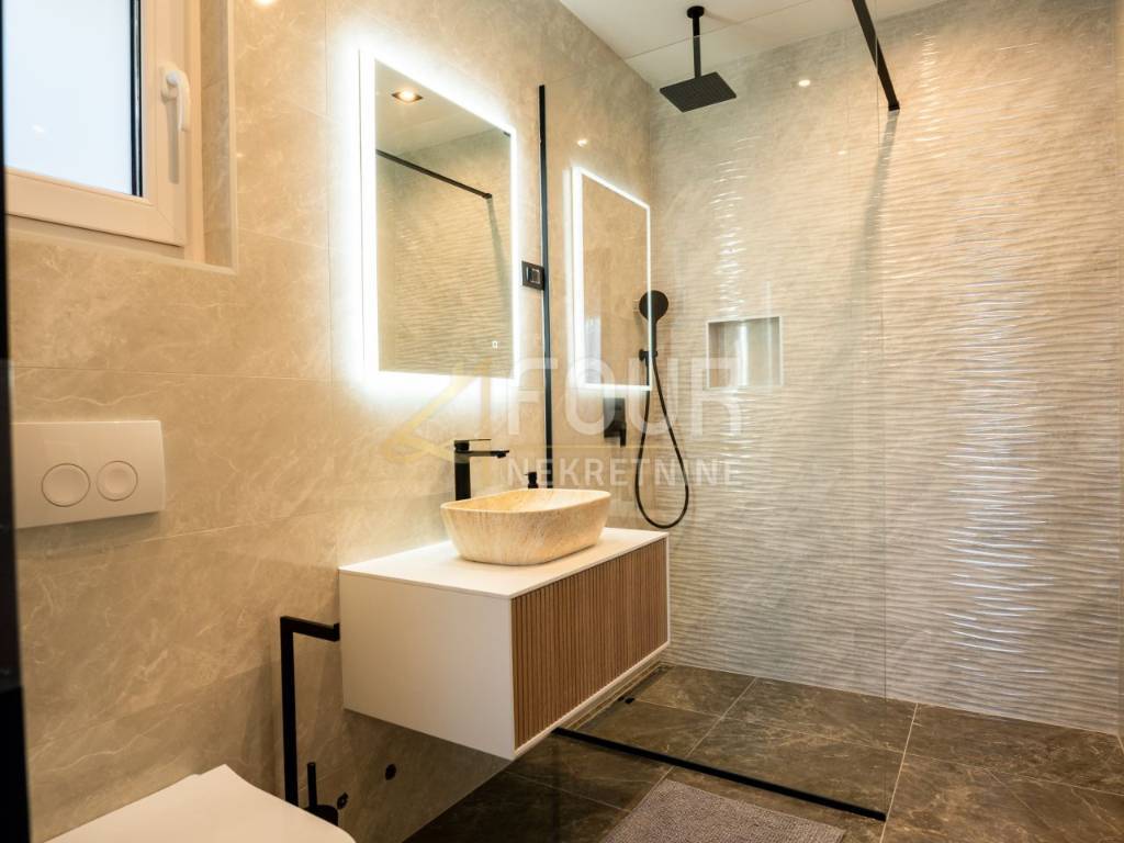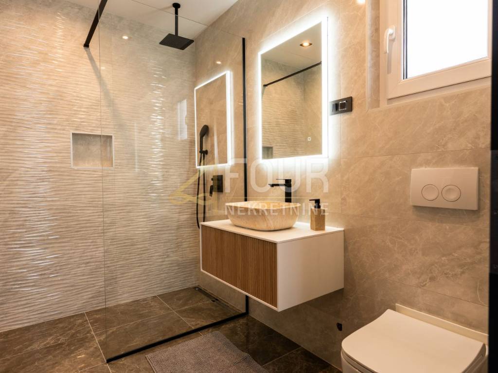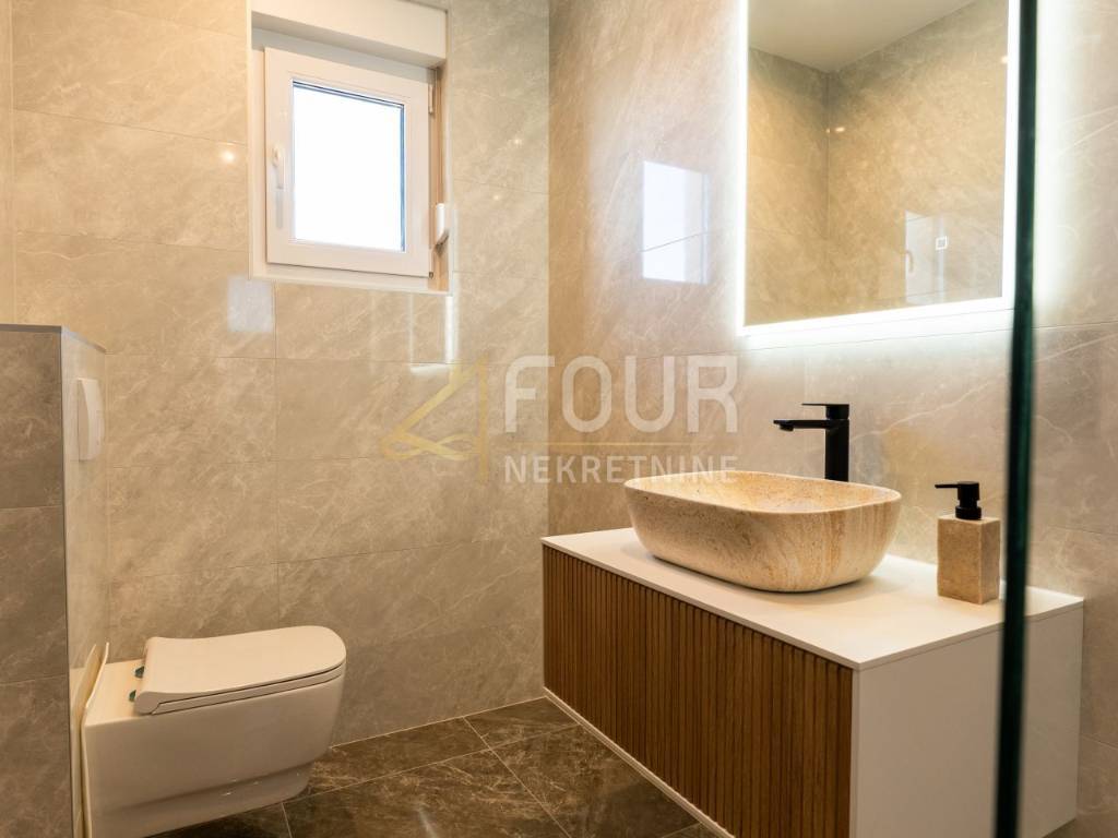 The first floor has a spacious open space with a modernly designed kitchen, dining room and living room. In addition, on this floor there is one bedroom with its own bathroom, an additional separate bathroom, a technical room, an entrance loggia and a beautiful terrace ideal for enjoying the sea view.