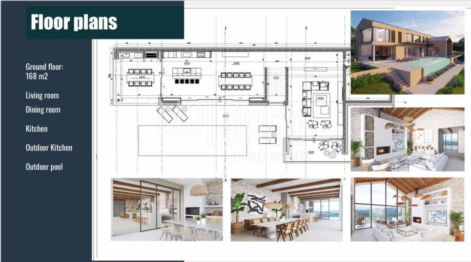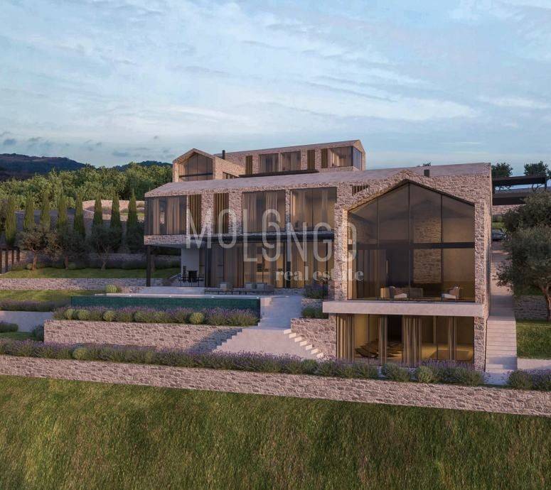 The project includes a luxurious traditional Istrian villa on three floors. In the basement there is a spa zone, indoor pool and entertainment area, on the ground floor there is a spacious living room, kitchen with dining room, bathrooms, laundry room and storage room, while on the first floor there are four bedrooms with bathrooms. The plot includes a summer kitchen, a large outdoor pool, a tennis court and parking for 4 cars.