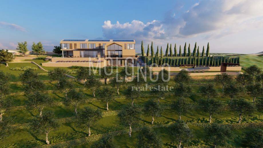 A plot of land of 7,900 m2 is for sale with a project and valid building permit for a luxurious traditional Istrian villa on three floors, in the vicinity of the magical Motovun. The land is located in a prime location and is surrounded by 300,000 m2 of olive groves. The land offers a panoramic view of Motovun.
