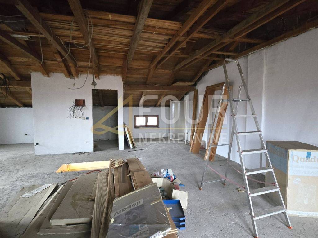 On the ground floor there is a furnished business space that is ideal for various types of business activities or can serve as additional living space. The first floor of the house consists of a spacious two-bedroom apartment with a living room, a good layout, ideal for a family. The attic is in a high unfinished phase, which gives the future owners the opportunity to finish it according to their own needs and wishes, whether it is used as additional living space or for other purposes.