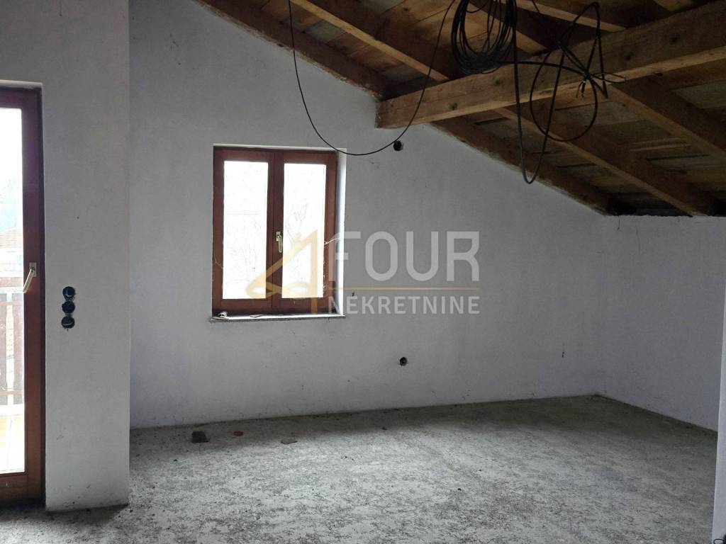A semi-detached house is for sale in a prime location in Marinići, with a total living area of ​​230 m², spread over three floors: ground floor, first floor and high attic.