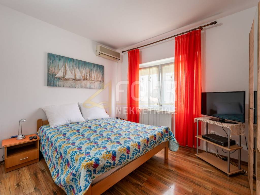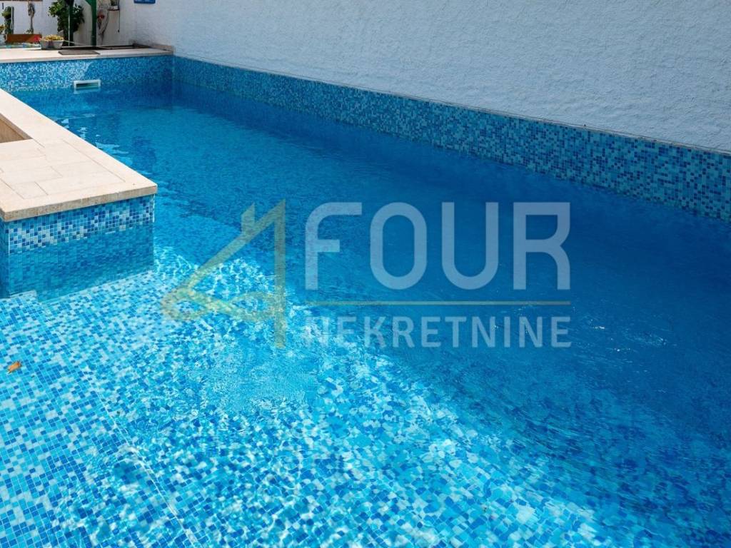 Inside, spacious living rooms, fireplaces, air conditioning, and PVC joinery stand out. The property includes a basement and a garage located beneath the building, while the outdoor area features a well-kept garden, a recently renovated swimming pool, a summer kitchen, a barbecue, and four parking spaces. Terraces and a balcony provide additional space for enjoyment, and the property is suitable both for living and for rental purposes due to its excellent location and functional apartment layout.