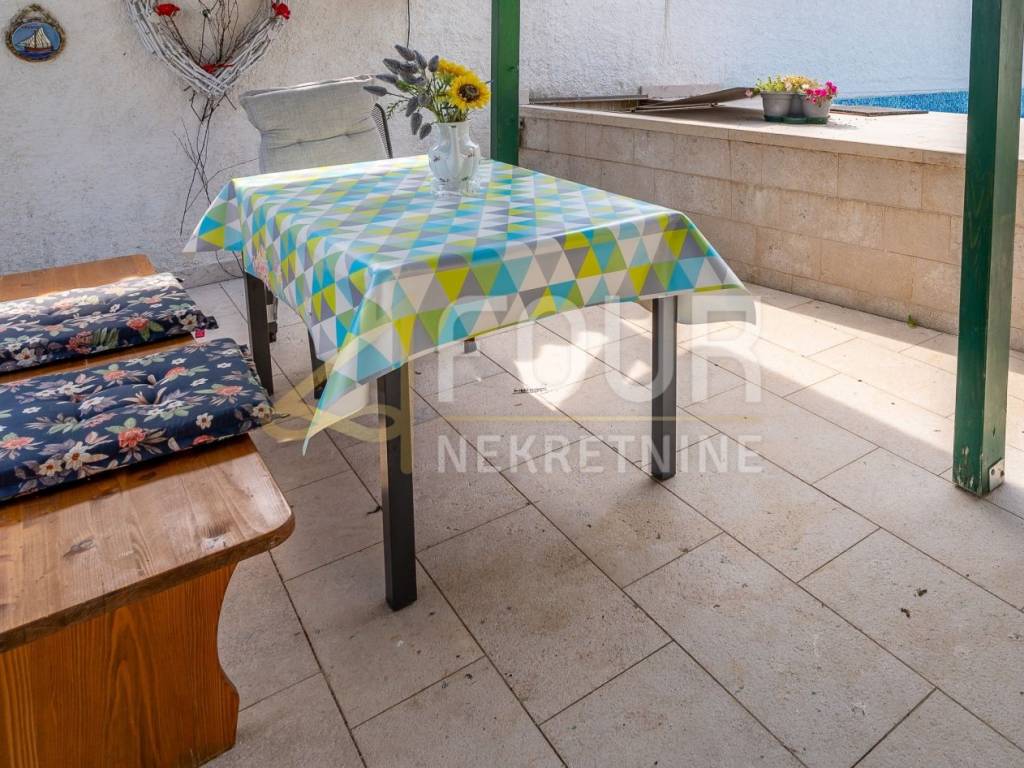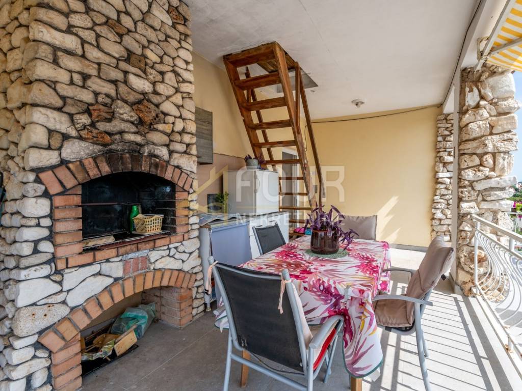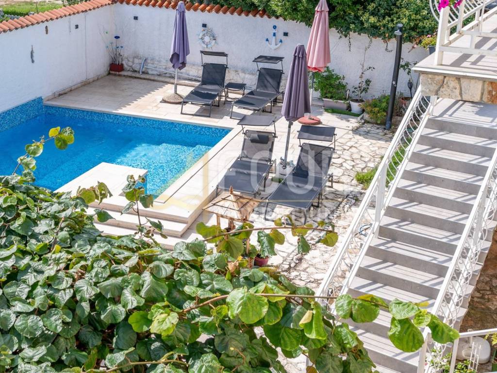 A detached house with a swimming pool is for sale in Fažana, with a total area of 220 m² and a plot of 445 m², located just 500 meters from the sea. The house was renovated in 2000 and includes four apartments. On the ground floor, there are two one-bedroom and one two-bedroom apartments, which are rented out during the season, while the first floor has an apartment with an external staircase. The attic offers the possibility to create additional living space of about 50 m².