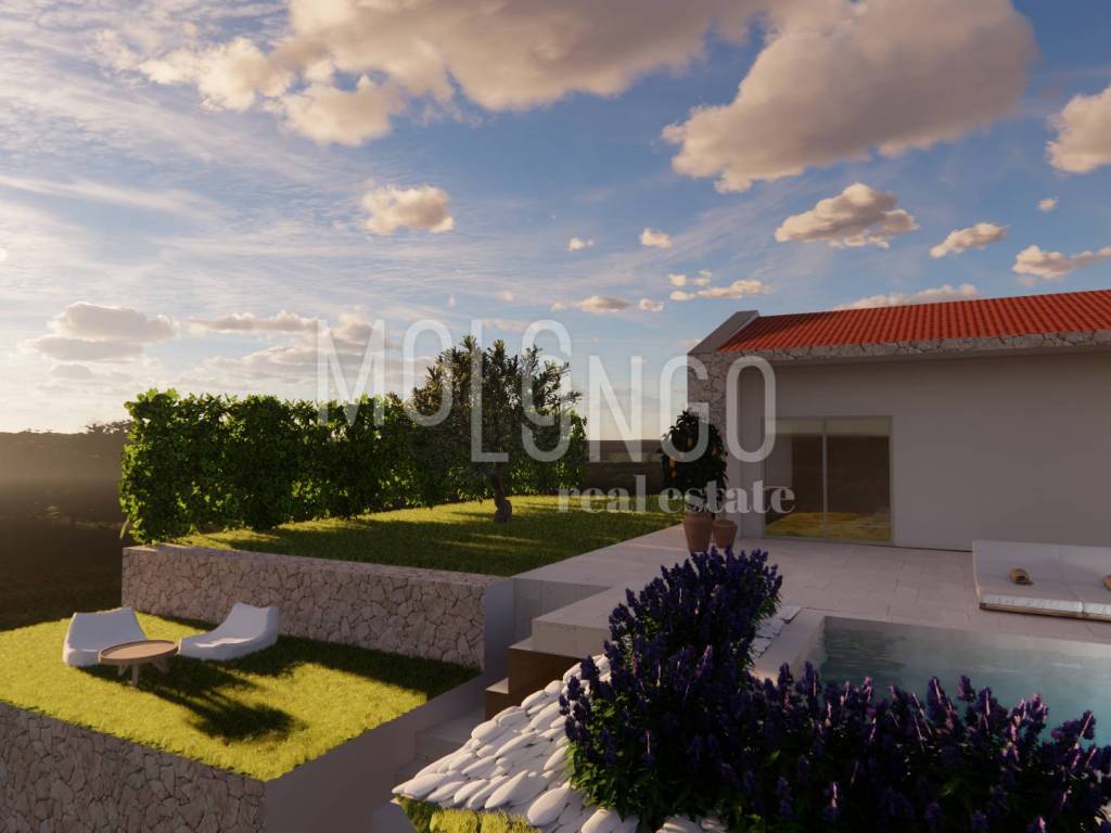 In the heart of Central Istria, in a peaceful location surrounded by nature, this beautiful modern single-story house offers the perfect blend of comfort and elegance. The house, with a total area of 115 m², is designed according to contemporary living standards. The spacious open-plan area connects the kitchen, dining room, and living room into a functional whole. The house also consists of two bedrooms, each with its own bathroom, as well as an additional guest toilet and utility room.