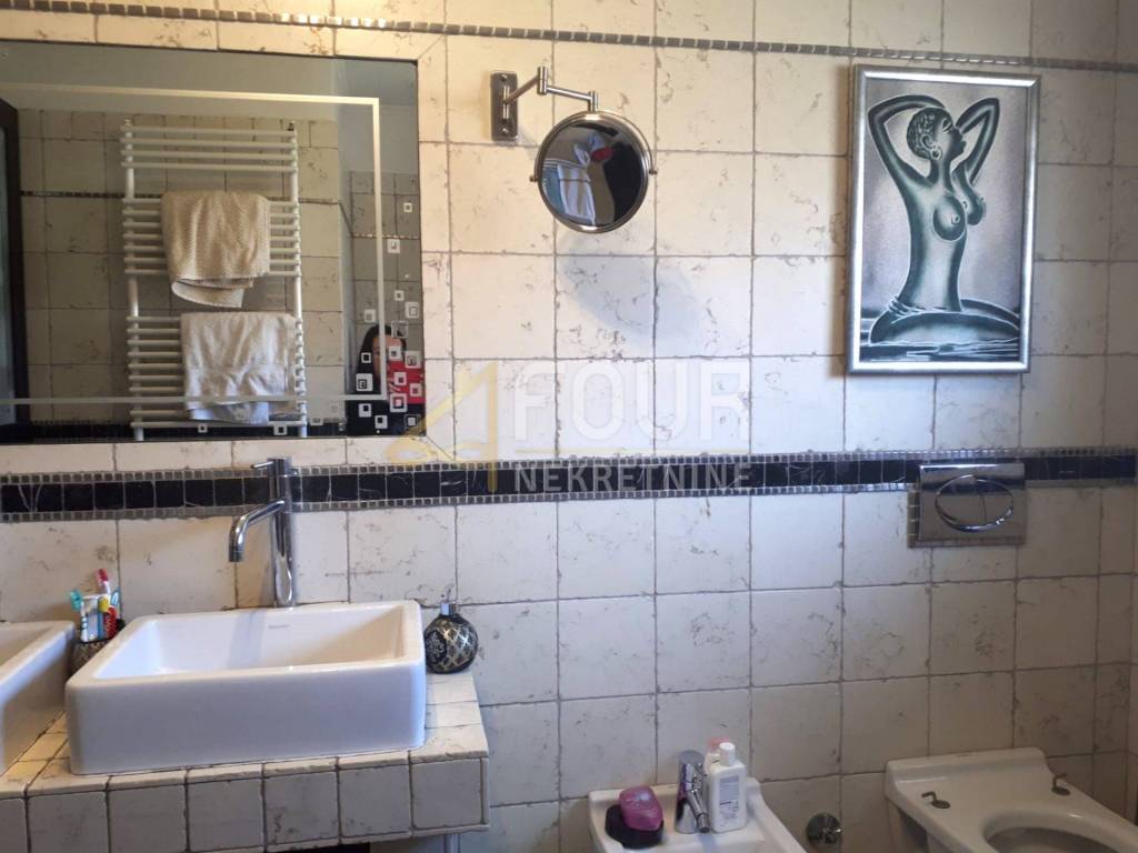 The house is partially furnished, including kitchen and bathroom furniture and a custom-made fireplace. The floors are covered with high-quality teak parquet, and in addition to the central floor heating, the bathroom has underfloor heating. The yard offers the possibility of building a swimming pool.
