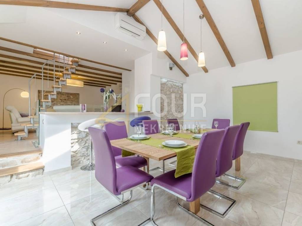 A beautifully decorated stone house with a swimming pool and a beautiful view of the sea is for sale, located in the vicinity of Zadar.