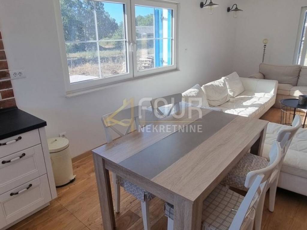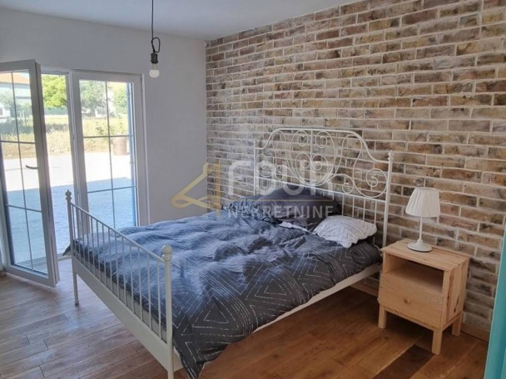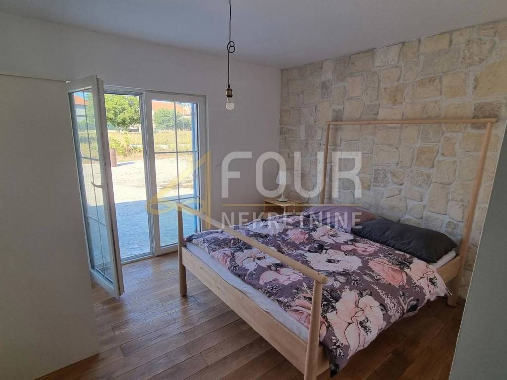 For sale is a newly built, detached charming stone one-story house with a living area of 107.90 m², situated on a plot of 1,481 m² with a yard of 1,334 m². It is located in a quiet area, ideal for family living or vacation, just 5 km from Nin.