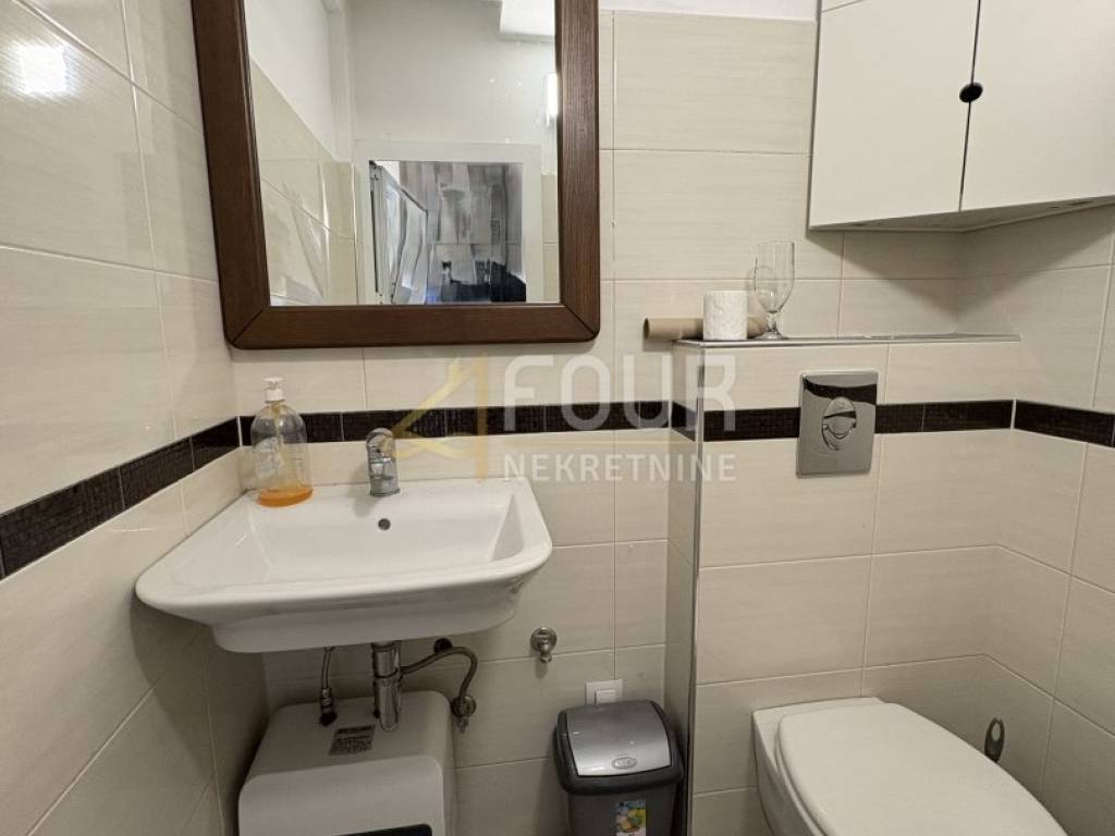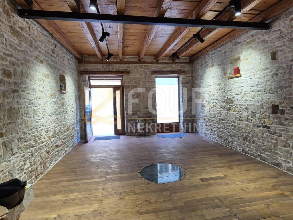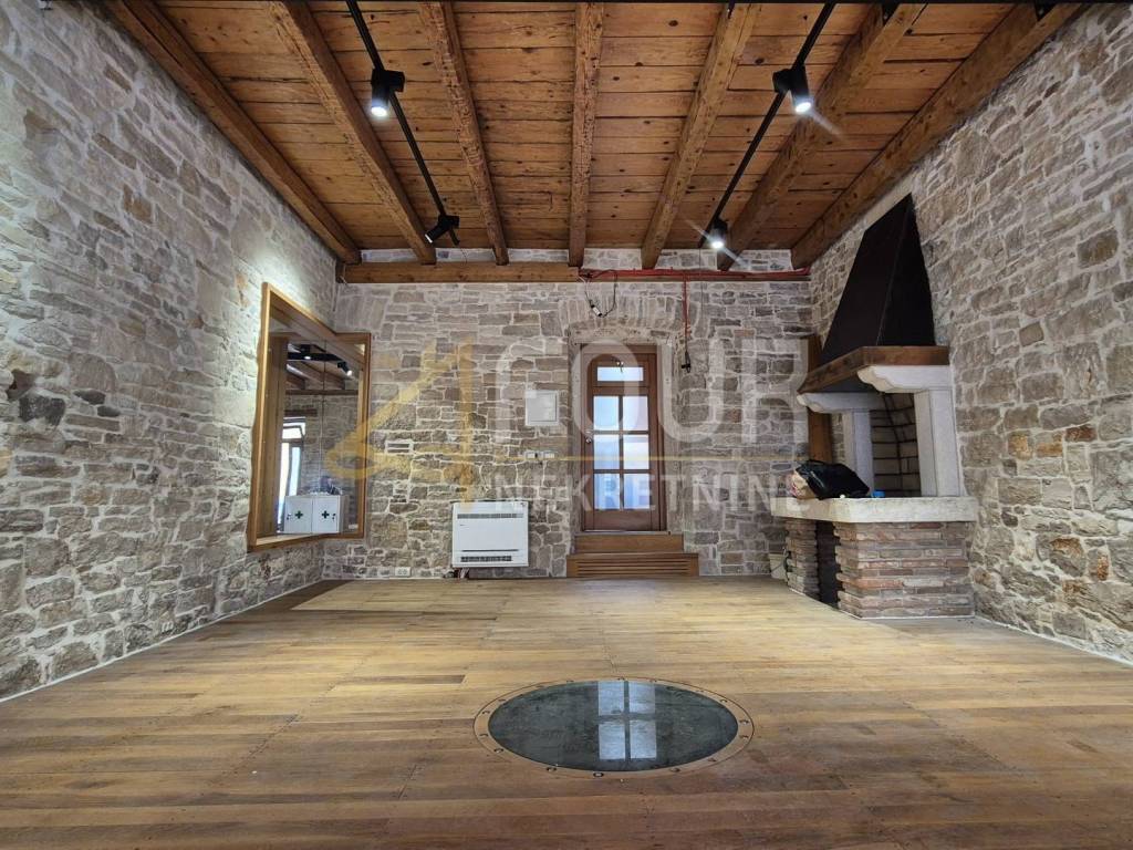 Business premises for rent in the very center of Pula, just a hundred meters from the Arena. Located on the ground floor of a quality building, it covers a total of 36.30 m², divided into a working area and a sanitary unit. Suitable for various purposes such as an office, beauty salon, or wine shop. The space exudes special charm thanks to its wooden interior and a dominant fireplace in the corner, while corner mirrors and carefully selected details create a pleasant and warm atmosphere. A large shop window provides excellent visibility to the main road, and the premises are air-conditioned and equipped with quality carpentry, ceramics, and parquet flooring. Dear clients, the agency commission is charged in accordance with the General Terms and Conditions.