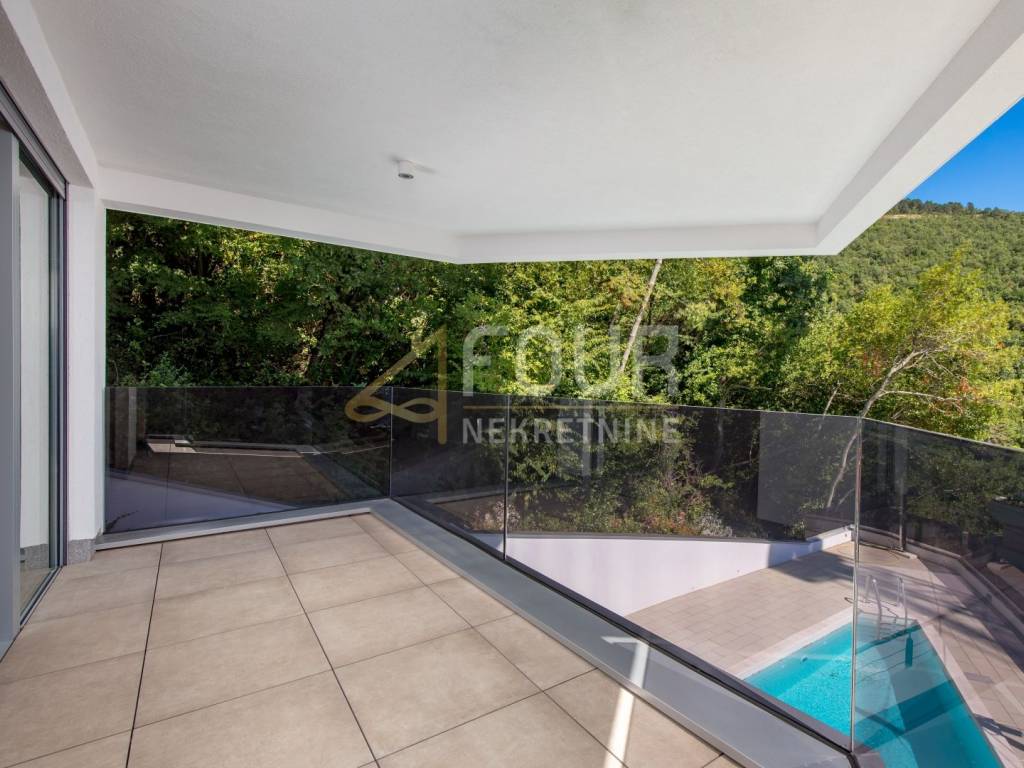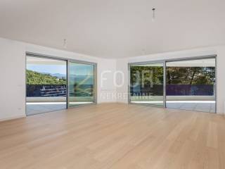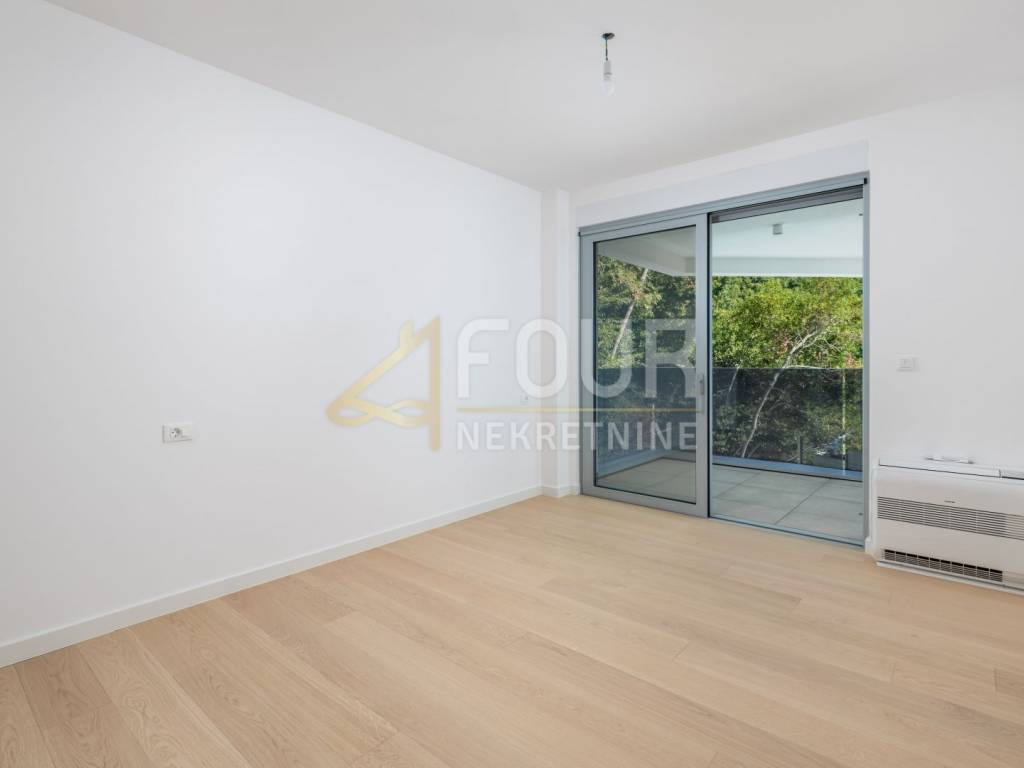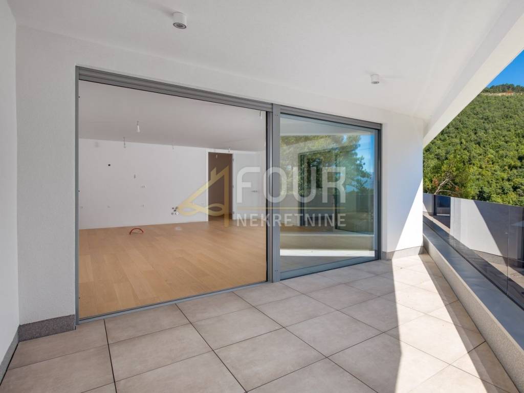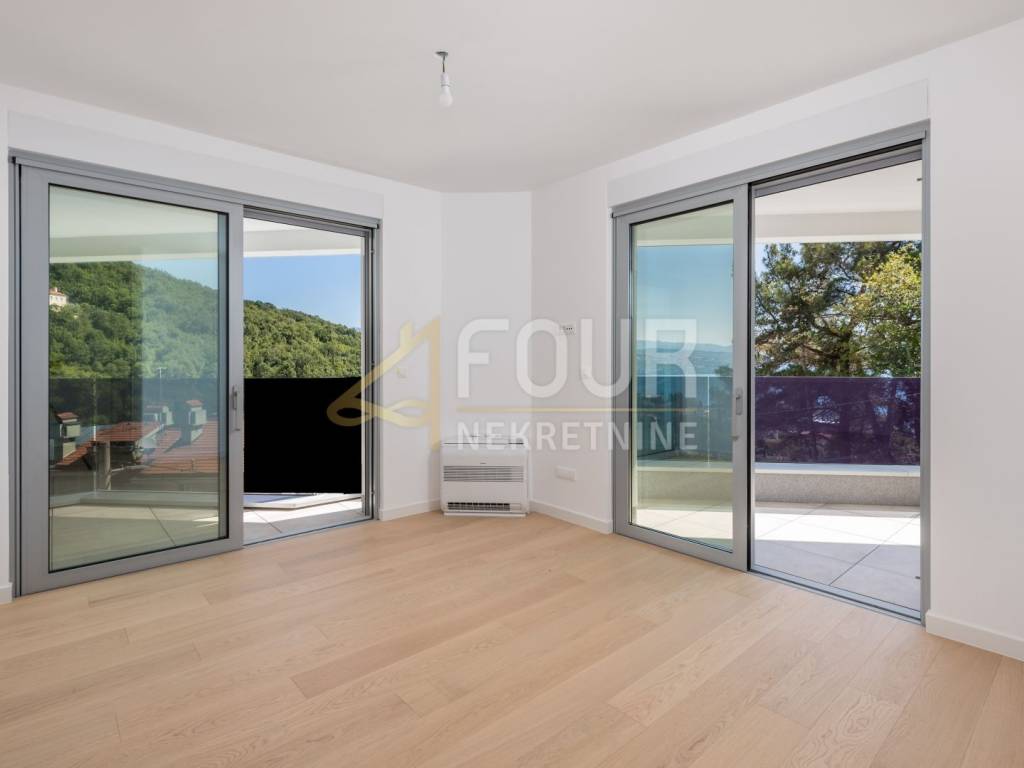 In Opatija, just a few minutes walk from the sea, a spacious apartment in a quality new building from 2025 is being sold. Located on the ground floor, facing south, the apartment exudes light and openness and offers a pleasant blend of comfort and privacy. The living space is designed as a two-bedroom apartment with a living room, two bedrooms, two bathrooms and an additional toilet, connected to spacious terraces that together make up almost 40m2 and provide a beautiful sea view. The private garden with a garden adds special value, ideal for relaxation, with the use of a shared pool that further emphasizes the quality of life. The apartment also includes a storage room in the basement, as well as a woodshed, and is also equipped with a garage parking space and one outdoor parking space. This property represents an excellent opportunity for living or investing in one of the most desirable locations on the Kvarner region.