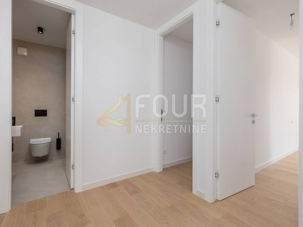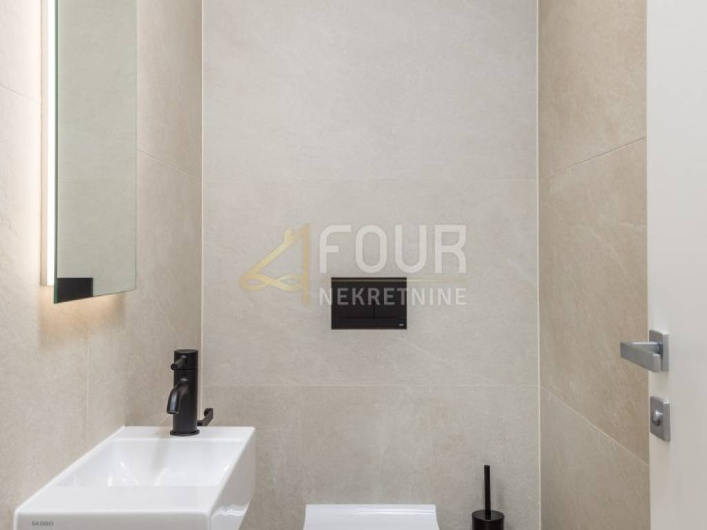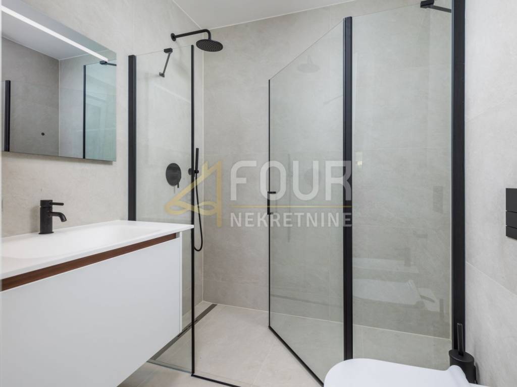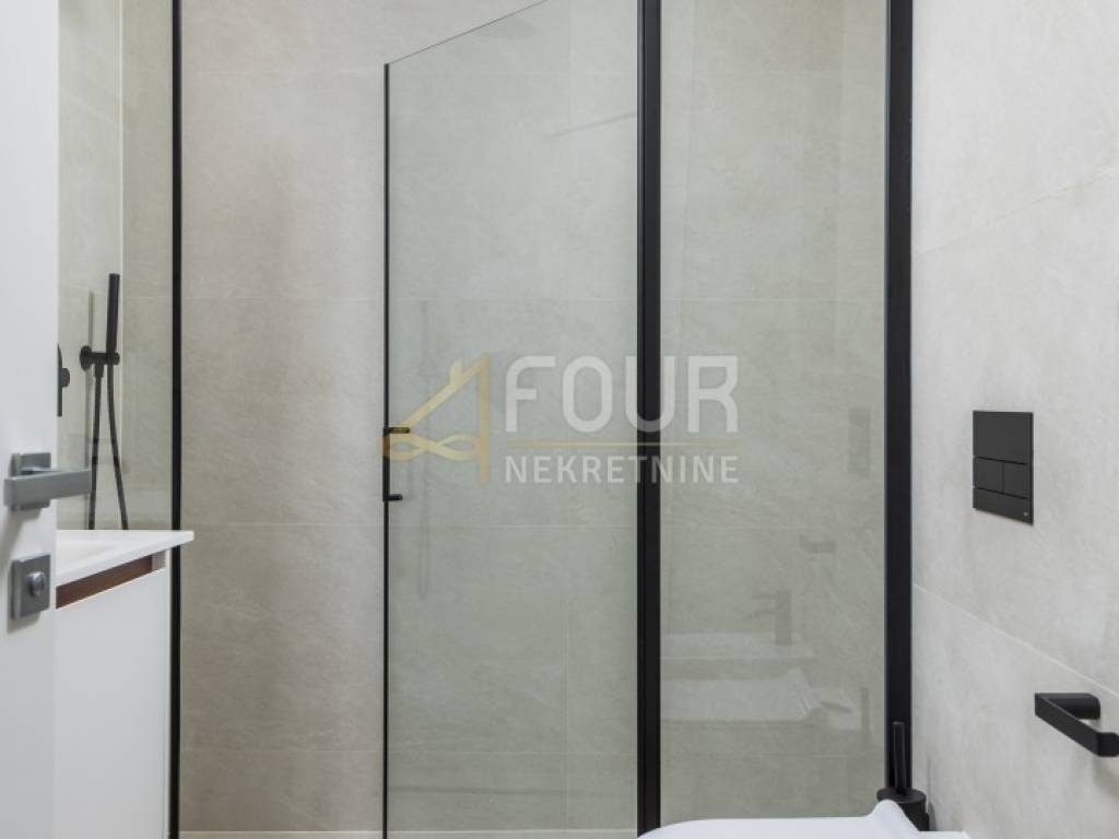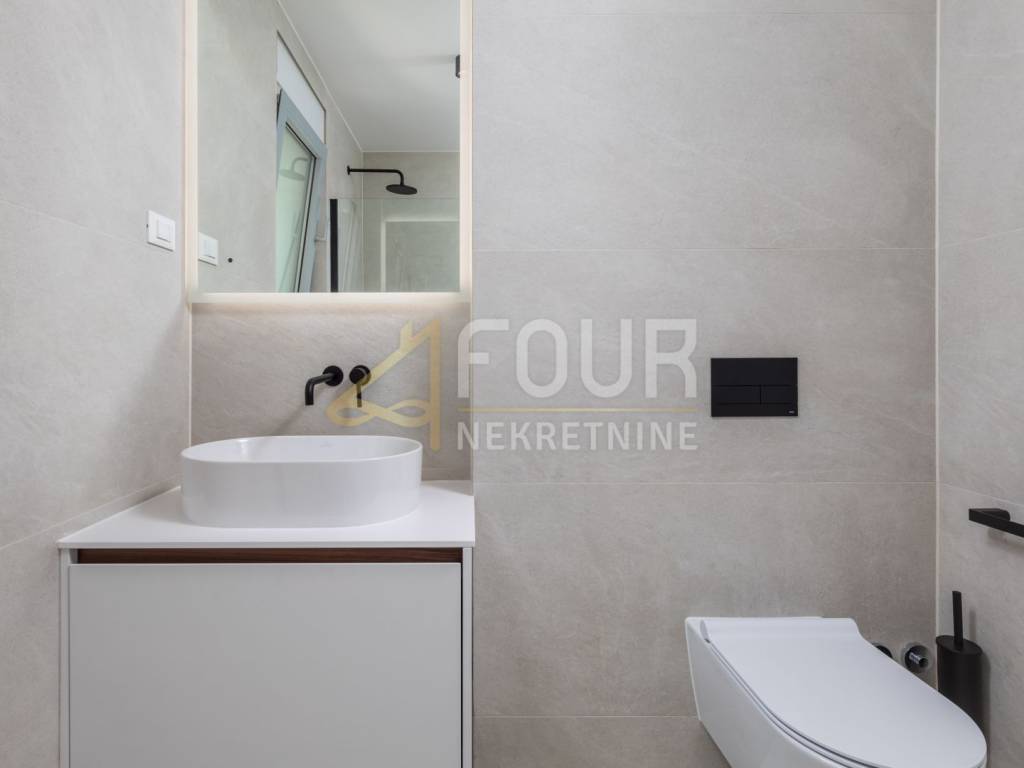In Opatija, just a few minutes walk from the sea, a spacious apartment in a quality new building from 2025 is being sold. Located on the ground floor, facing south, the apartment exudes light and openness and offers a pleasant blend of comfort and privacy. The living space is designed as a two-bedroom apartment with a living room, two bedrooms, two bathrooms and an additional toilet, connected to spacious terraces that together make up almost 40m2 and provide a beautiful sea view. The private garden with a garden adds special value, ideal for relaxation, with the use of a shared pool that further emphasizes the quality of life. The apartment also includes a storage room in the basement, as well as a woodshed, and is also equipped with a garage parking space and one outdoor parking space. This property represents an excellent opportunity for living or investing in one of the most desirable locations on the Kvarner region.