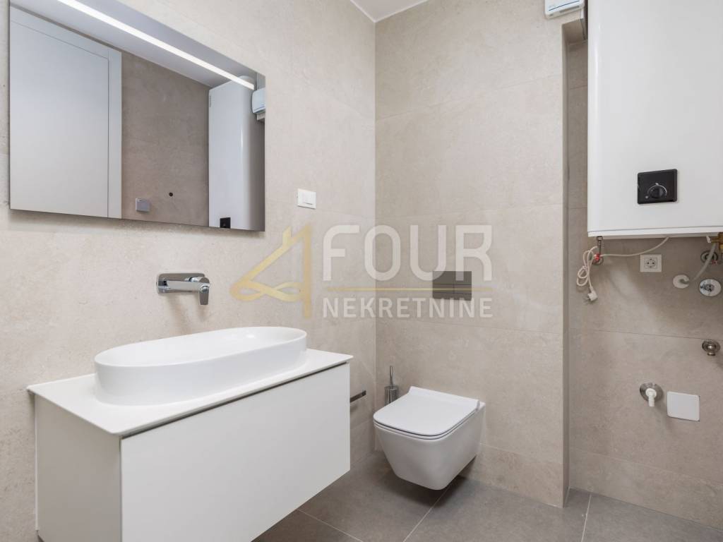 With a total area of 141.53 m2, it consists of two spacious bedrooms, two bathrooms and an additional toilet, while the living area is connected to the kitchen and dining room in a modern open concept. The real value is provided by a total of 47.30 m2 of balconies spread over three balconies, allowing enjoyment of the view and outdoor space throughout the day.