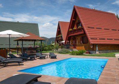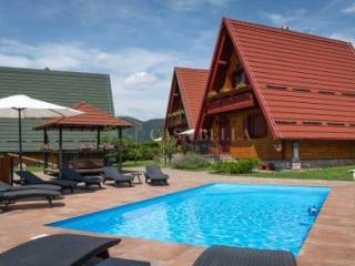 Casa Bella Real Estate offers a complex of four vacation homes in Gorski kotar. The properties are located an hour's drive from Rijeka and an hour and forty minutes from Zagreb. The four houses are designed in alpine style, built to a high standard and tastefully furnished. Three smaller houses have an area of 70 m2 and the larger one is 160 m2. The houses are part of a well-established tourist business that the new owner can take over. The complex has its own sauna and heated pool. Although each house is registered as a separate property in the land register, the property is only being sold as a whole. This tourist complex is unique in terms of its location, facilities and ultimately the profit it brings.