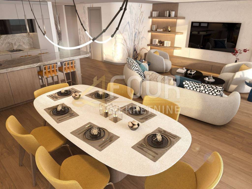 The offer includes a three-bedroom apartment with a living room, with a total area of 138.14m2, located in a luxury residential complex under construction, with a planned completion date of 30.06.2025. The apartment is located in a prestigious location in Rijeka, with a terrace offering a beautiful view of the sea.