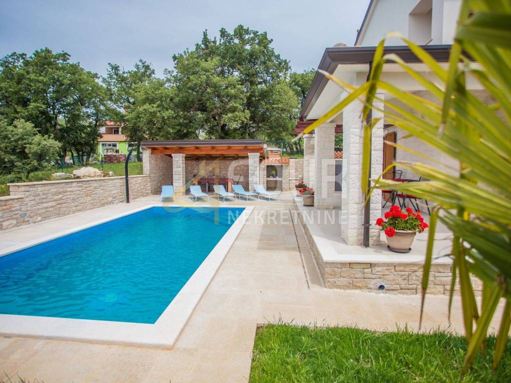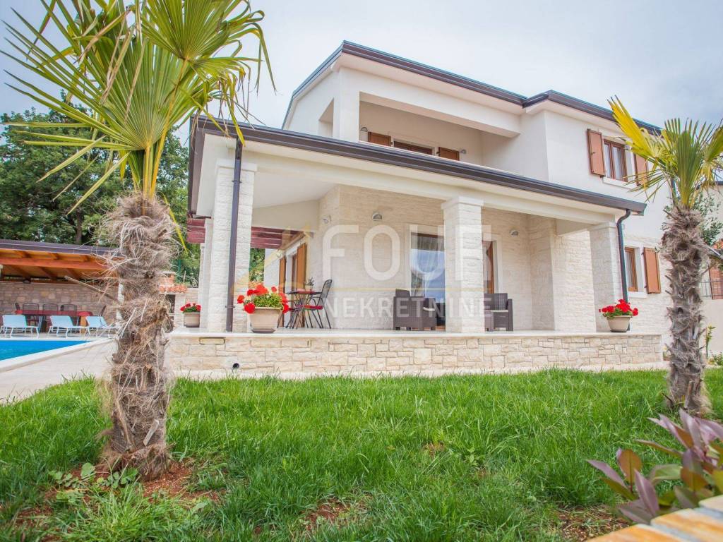 We offer a beautiful detached villa with a pool! It is located in a beautiful and quiet location, 7 km from the sea and the center of Poreč. The house is designed as a two-story apartment (ground floor and first floor). On the ground floor there is a kitchen with a dining room and a living room, while on the first floor there are three bedrooms and two bathrooms. In addition to the swimming pool, there is an outdoor shower, terrace, barbecue and two parking spaces on the landscaped garden of 344 m2. Excellent real estate and as an investment for rent!