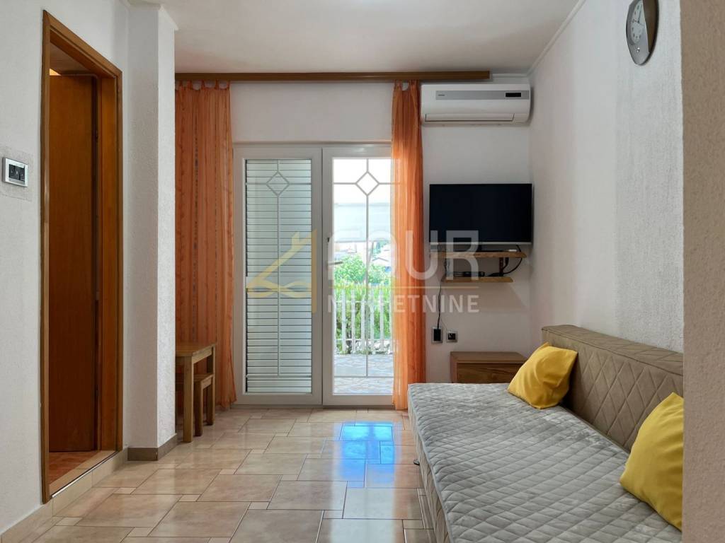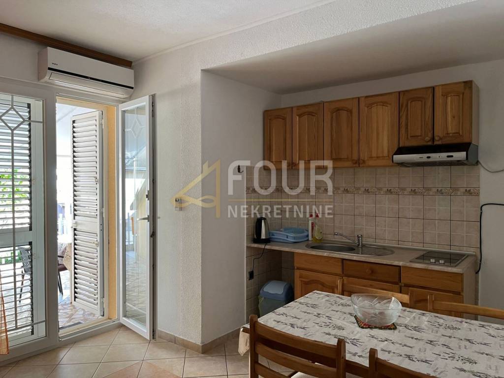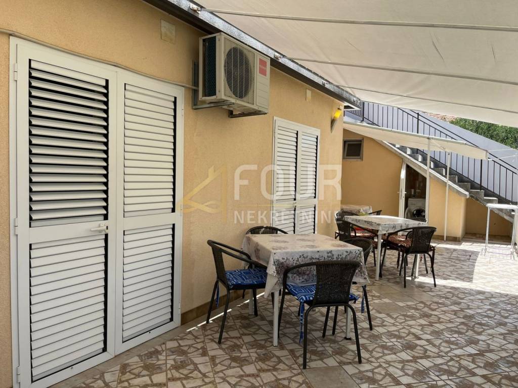 For sale is an apartment in Tribunj with a total area of 114 m², which is effectively divided into three separate units. Two apartments are about 40 m² each, and one is about 34 m², all categorized with three stars and ready for continued tourist rental. Each apartment is accessed from a spacious 33 m² terrace that connects them, and the location, only 150 meters from the sea and close to all amenities, makes this property an excellent investment opportunity.