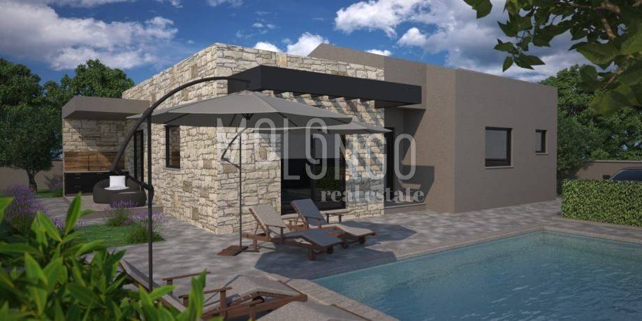 Istria, Čabrunići, in one of the quiet settlements of Općna Svetvinčenat, a new single-storey house is for sale in a complex of six houses.