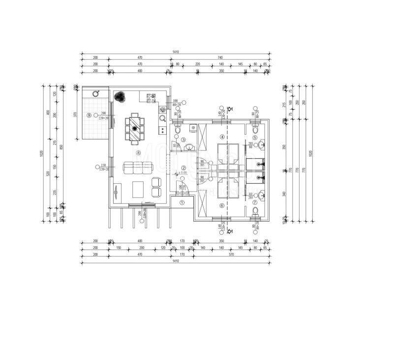 The house is located on a plot of 411 m2, while the living area of ​​the house is 97 m2.