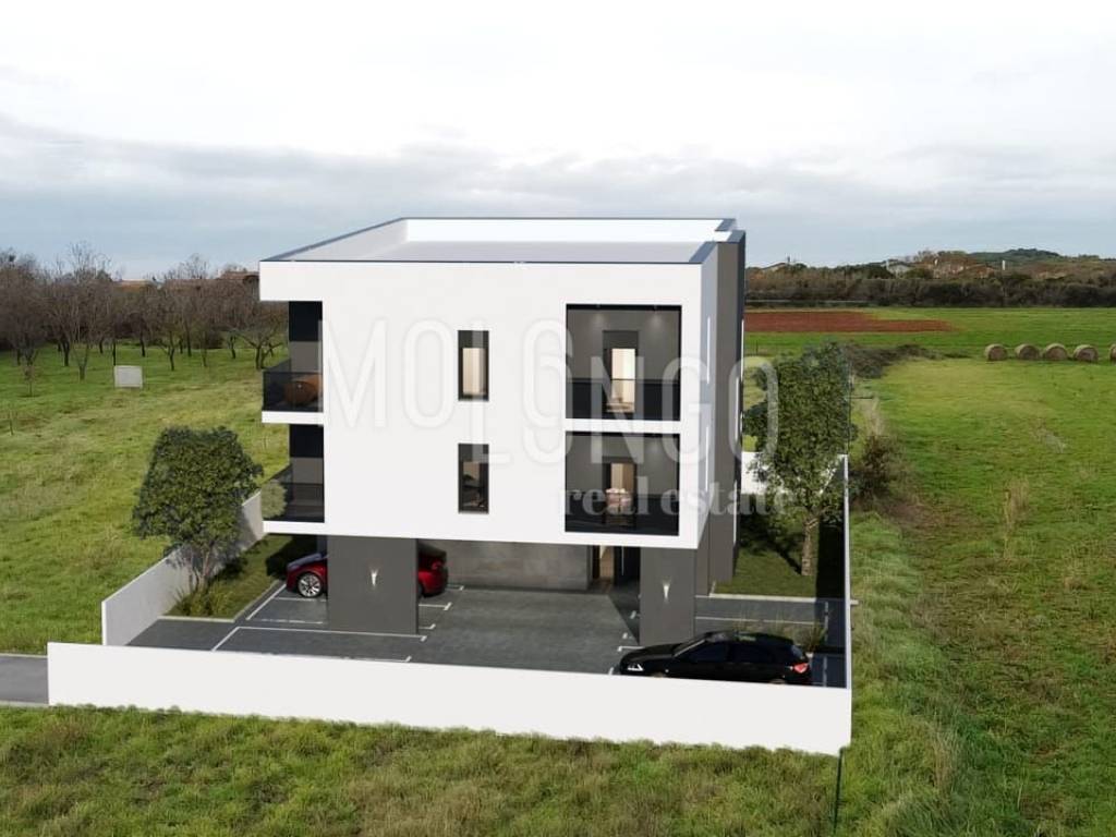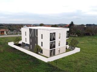 In a quiet settlement in the suburbs of Pula, 4 km from the city center, this beautiful apartment with a total living area of ​​93 m2 is for sale. The apartment is located on the second floor of a newly built residential building with only six apartments.