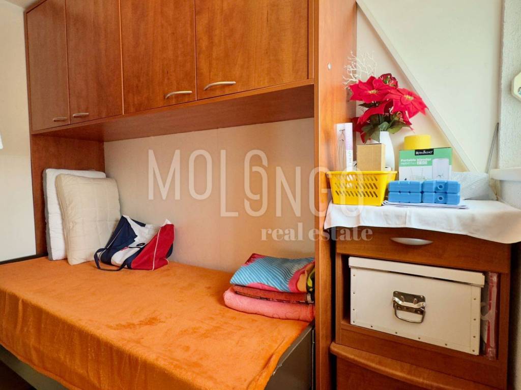 From the new offer of apartments in close proximity to the sea, we present a furnished apartment in Ičići. The apartment has a large room that serves as a living room, dining room, and kitchen. In the other part of the apartment, there is a spacious bedroom with access to a terrace with a sea view. At the end of the hallway leading to the bathroom, there is another bed. Both sleeping areas can be separated by curtains for more privacy.