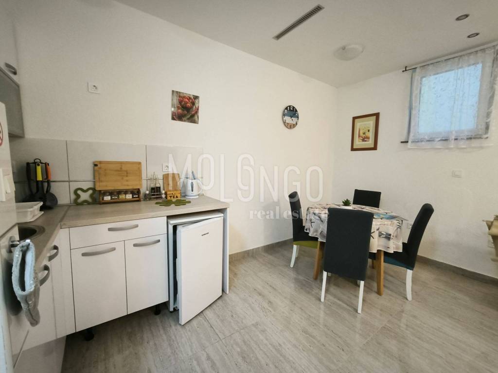 MALINSKA, one-room apartment of 36.27 m2 in the basement of a residential building, in a quiet location, only 1 km from the sea and the center of Malinska. The apartment consists of a kitchen with a dining room and a living room, a bedroom and a bathroom. The apartment has a garden of 81 m2, decorated as a gazebo for social gatherings, as well as one parking space.