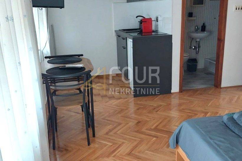 For sale is an attractive property in Medulin consisting of two buildings: one large house with 7 apartments and one small house with 2 apartments (9 apartments in total). The total area is 530m2, while the garden area is 282m2. The house is detached and has three floors (ground floor + 2 floors). On the ground floor there is a spacious apartment (3 bedrooms + living room), 110 m2. On the first and second floor there are two apartments (1 bedroom + living room) and one studio on each floor. All apartments have balconies or terraces, and the floors are connected by an external staircase. The small house contains two apartments (2 bedrooms + bathroom).