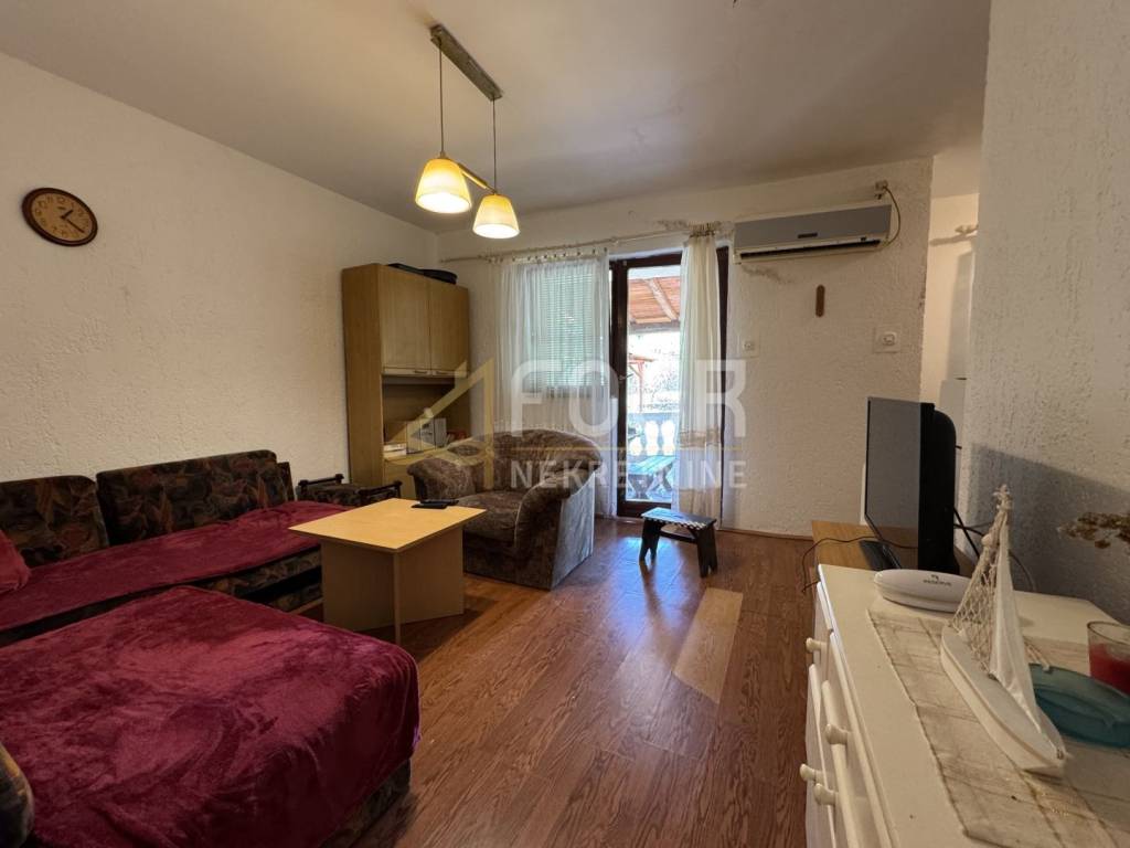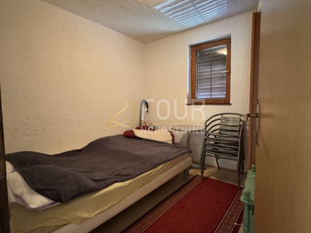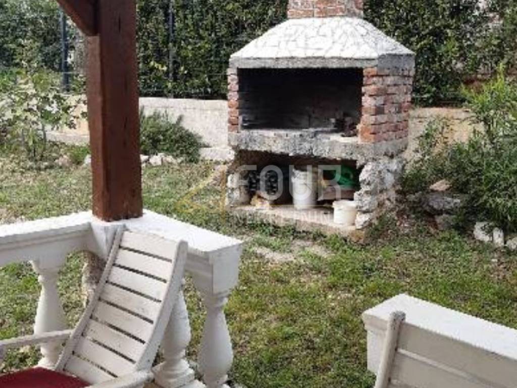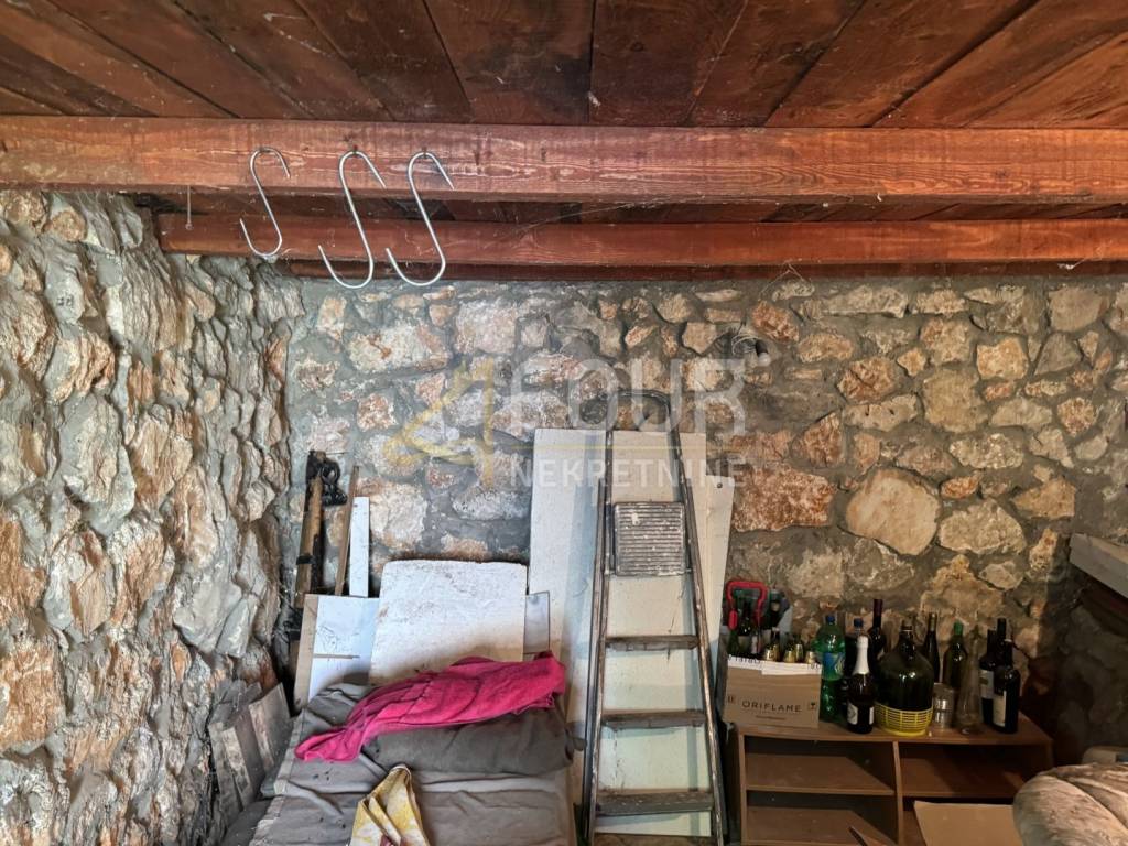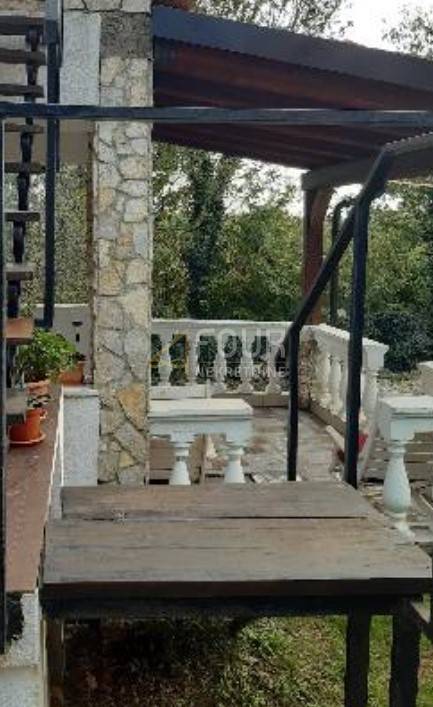 A detached house is for sale on the island of Krk, near Vrbnik, situated on a fenced plot with a total area of 702 m² featuring a beautifully maintained garden.