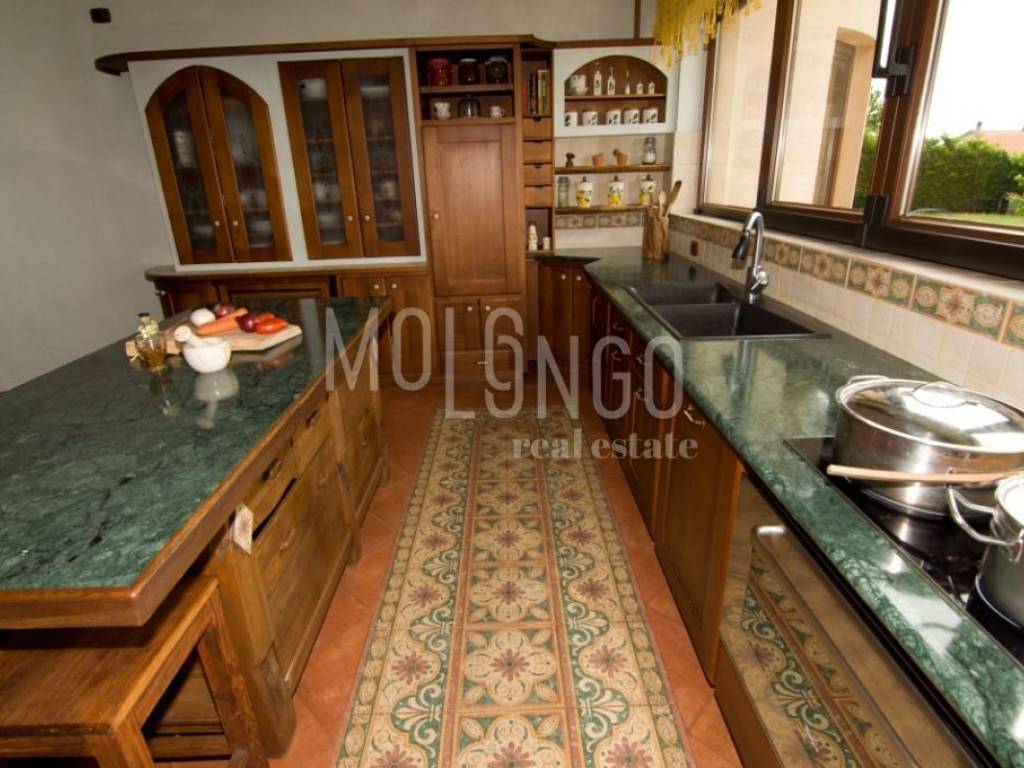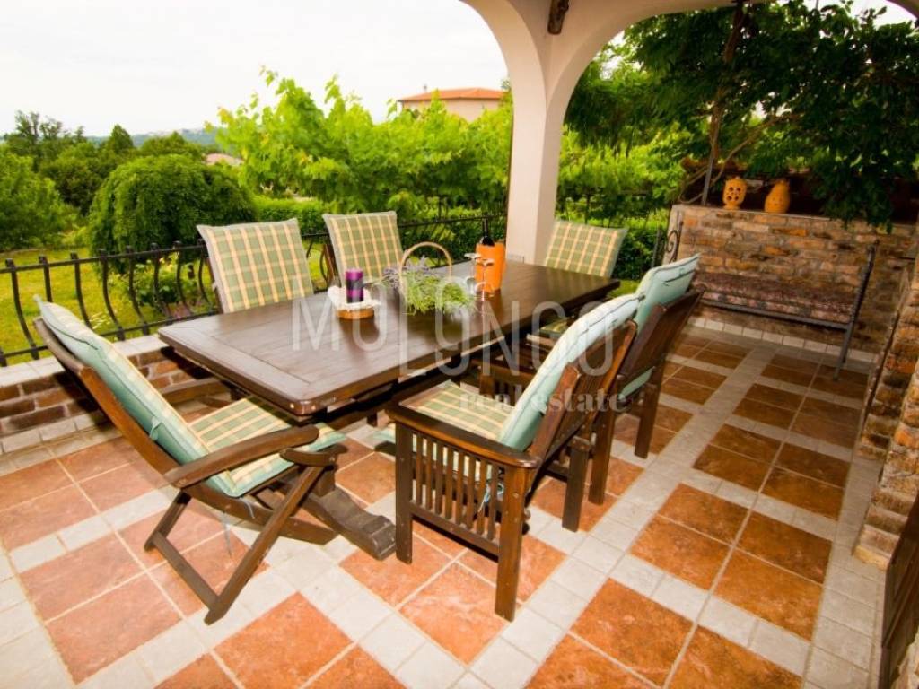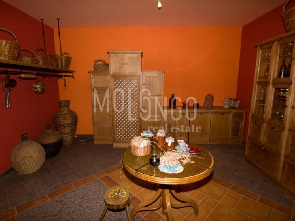 The exterior features an outdoor kitchen, and with the spacious surrounding area, there is enough room to build a swimming pool. The villa exudes a calm and pleasant energy, surrounded by nature, lawns, olive trees, and fruit trees.