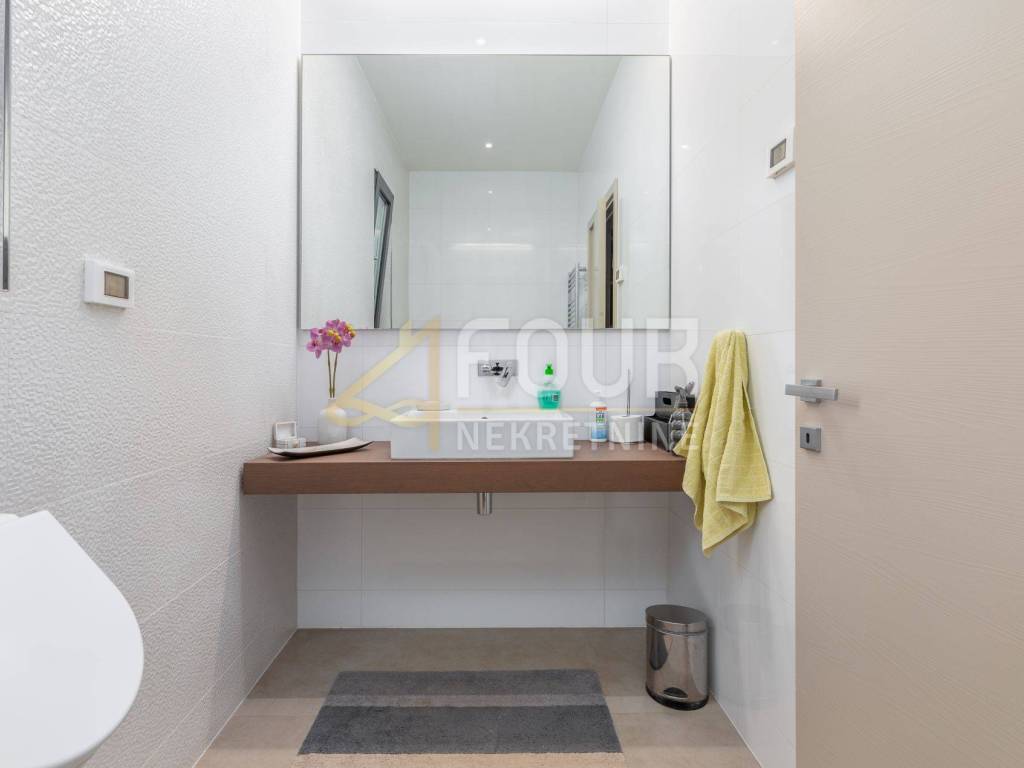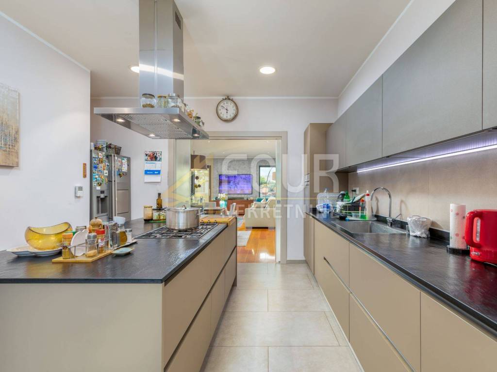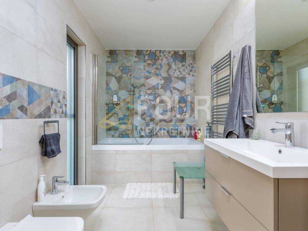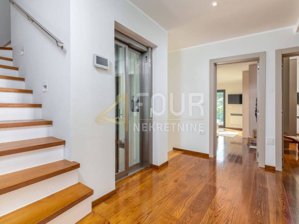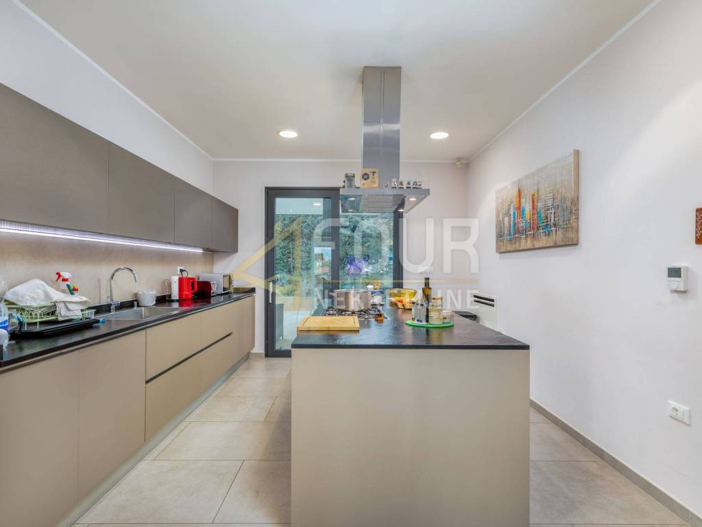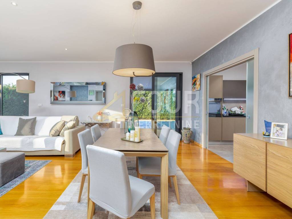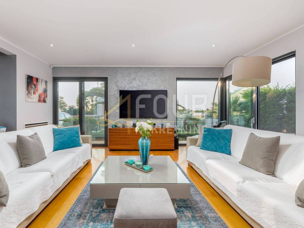 The villa has an extraordinary architecture with lots of glass walls and daylight, and an extremely functional layout. It is also fully equipped with top quality materials, from wooden and ceramic coverings to interior doors, underfloor heating, solar panels and an elevator.