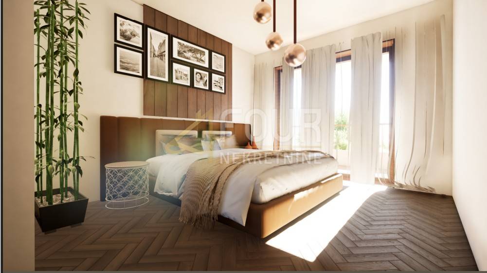 The layout allows for two or three bedrooms, depending on the buyer's preference, with a spacious living area, two bathrooms, and a covered 20 m² loggia that extends the living space and offers year-round enjoyment of the view. Each apartment includes two outdoor parking spaces and a private storage room. Apartments will be equipped with modern features – underfloor heating, air conditioning, aluminium joinery, electric shutters, security doors, and video surveillance.