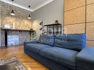 A spacious apartment of 75 m2 is for rent in the very center of Rijeka. It consists of two bedrooms, a living room, kitchen with dining area, bathroom, hallway, and a 2.5 m2 loggia, and it also includes a storage room on the ground floor of the building. It was completely renovated four years ago and has been regularly maintained since then. It is decorated and furnished with modern details and is ready to move in. It is equipped with two inverter air conditioners, an electric fireplace in the living room, and underfloor heating in the bathroom, while the aluminum windows ensure good insulation. The building has video surveillance, which further contributes to the safety of living. Parking is possible at a nearby public parking lot with a fee. The apartment is an excellent choice for those looking for a large, functional, and modernly equipped space in the heart of the city, with the possibility of long-term rental. Dear clients, agency commission is charged in accordance with the General Terms and Conditions.