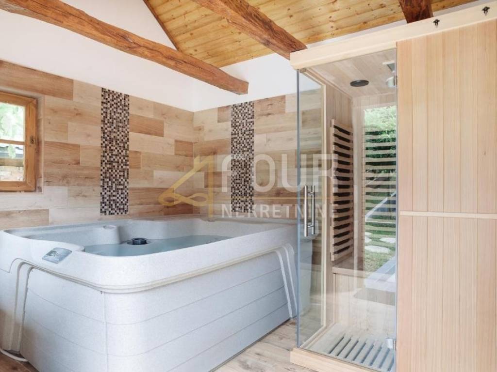 Part of the property is located directly by the shore of the Korana River, and this part features a private beach, beach house, raft, playground, slides, and additional parking spaces, making this property truly rare and special.