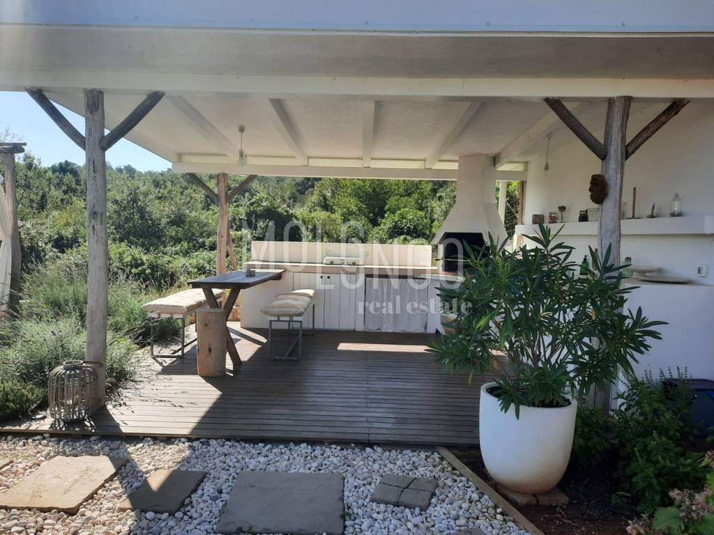 We offer an enchanting house in the very heart of Dobrinje with an extraordinary view of lush greenery and partly of the sea. This incredible property is located just 3 kilometers from the coast, offering you the perfect combination of peace and proximity to the sea.