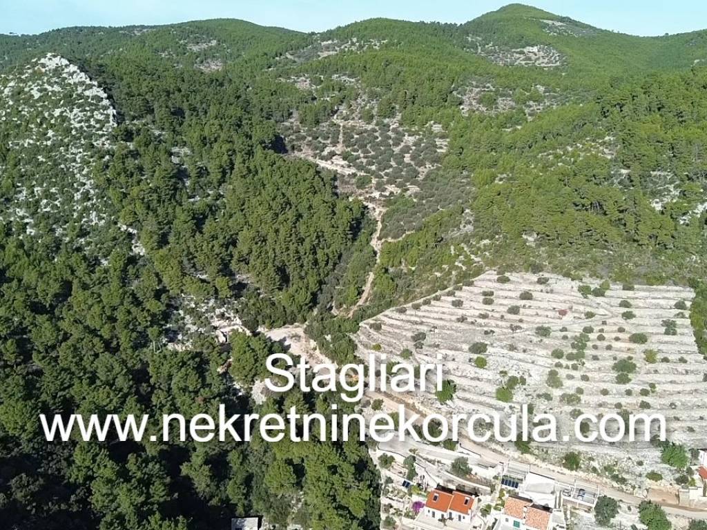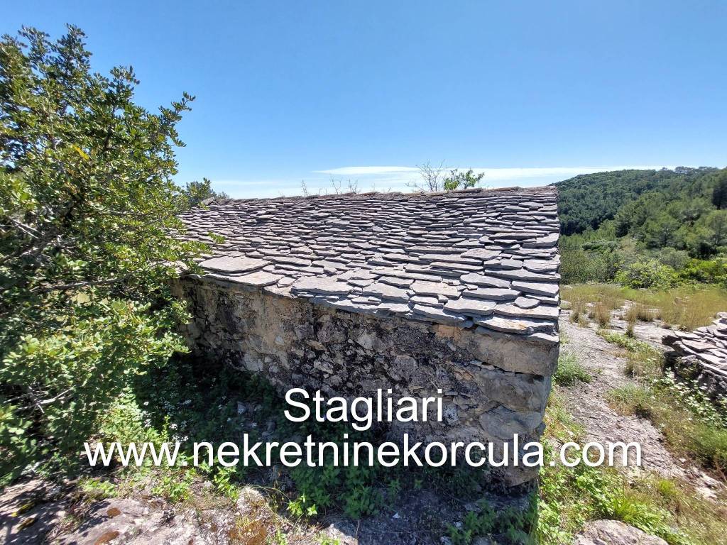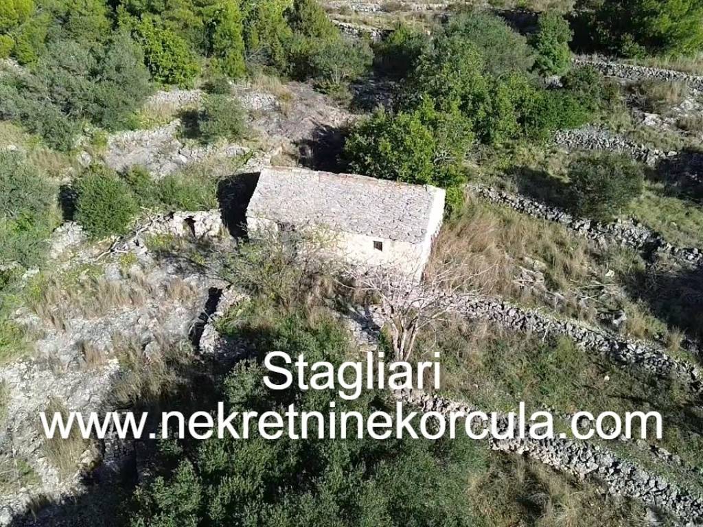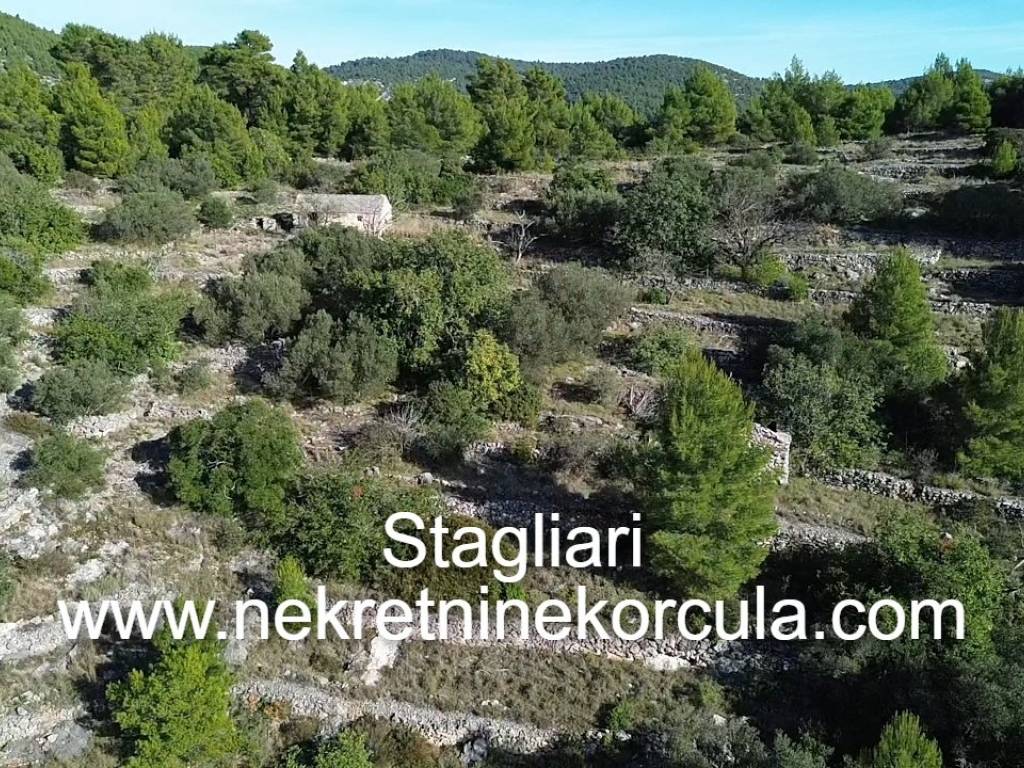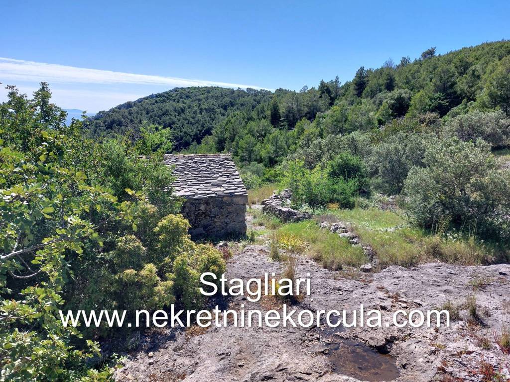 For sale is a valuable agricultural land plot of 15,500 m², located in a peaceful and natural setting in Gršćica bay, on the southern side of the island of Korčula, only 400 meters from the sea. This property offers an excellent combination of privacy, nature, and proximity to the coastline, making it a rare opportunity on the market. The land includes two traditional Dalmatian stone houses: one stone house is in good condition and suitable for use or further renovation, the second stone house is ruined and offers great potential for reconstruction and restoration in an authentic Dalmatian style. Additional features of the property include: