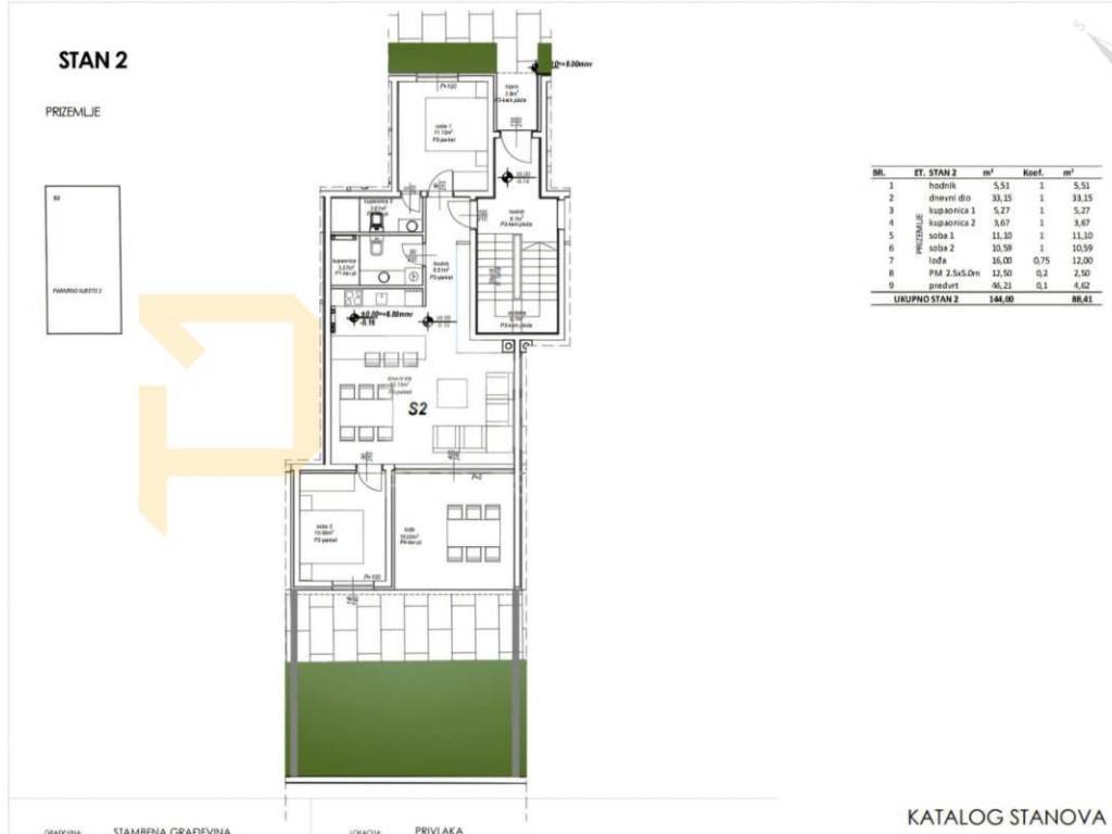 S2 - ground floor, two-bedroom apartment 88.41 m2 – €309,435.00
