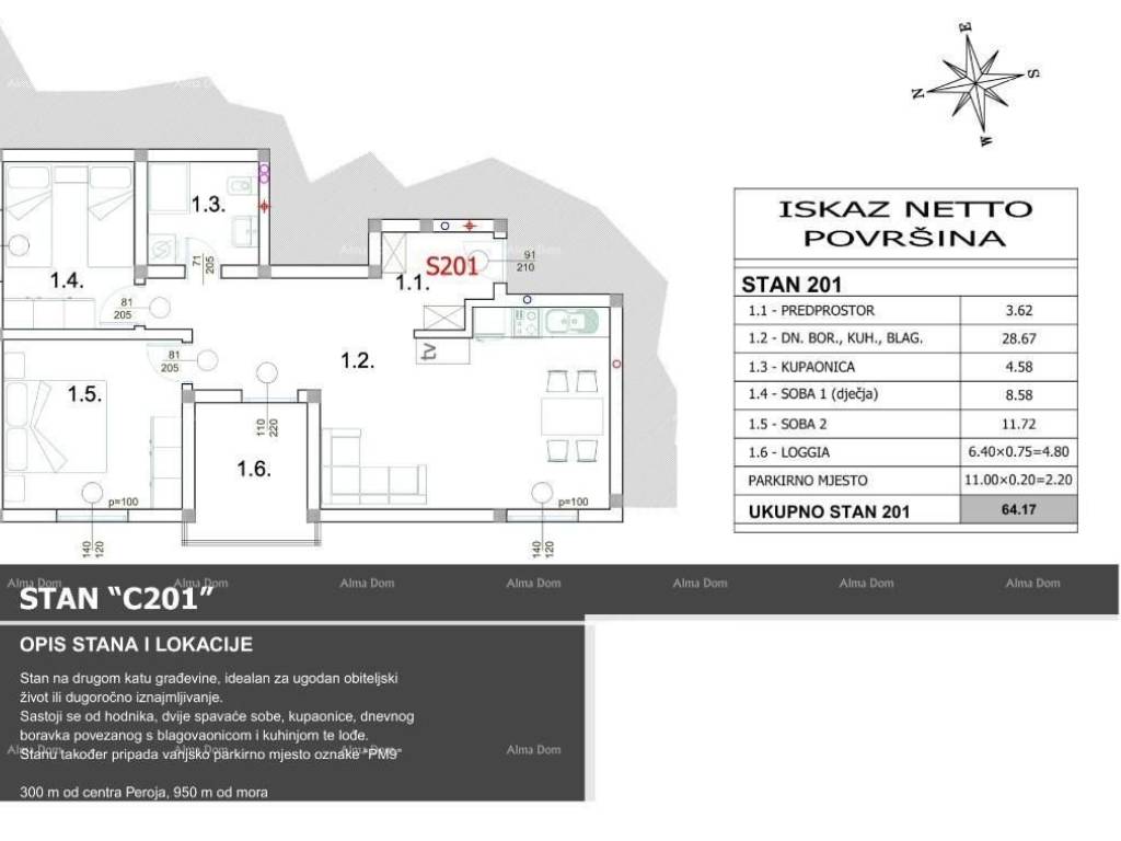 We are selling an apartment (C201) on the second floor of a new building in Peroj!The apartment consists of two bedrooms, a bathroom, a kitchen, a dining area, and a living room that opens onto a covered terrace. From the terrace, you can see a bit of the sea.The apartment has underfloor heating in all rooms except the bedrooms, air conditioning, and a parking space owned by the seller. It is sold with a fitted kitchen, without furniture, and with sanitary fixtures.For more information, please feel free to contact us:Azra Valjevac +385 91 611 5706 azra@almadominvest.com www.almadom.com Gojko Đurković +385 95 4700000 gojko@alma-nekretnine.com