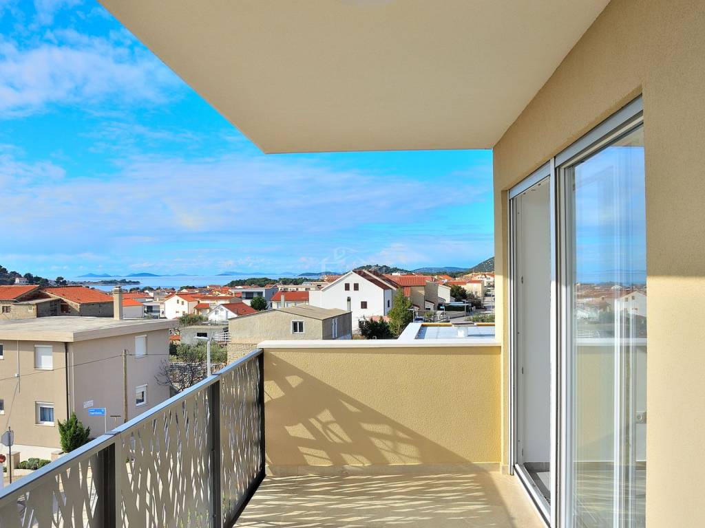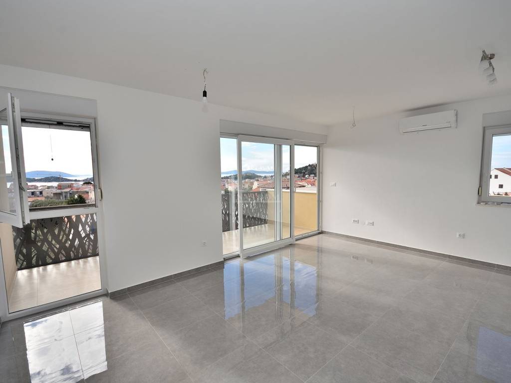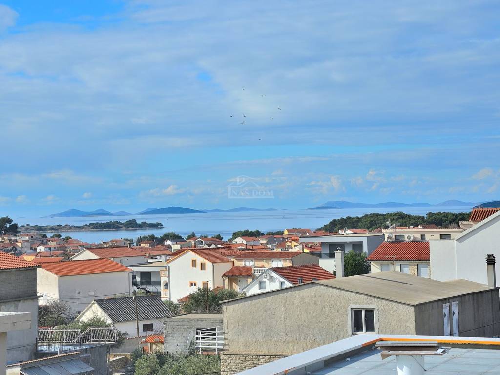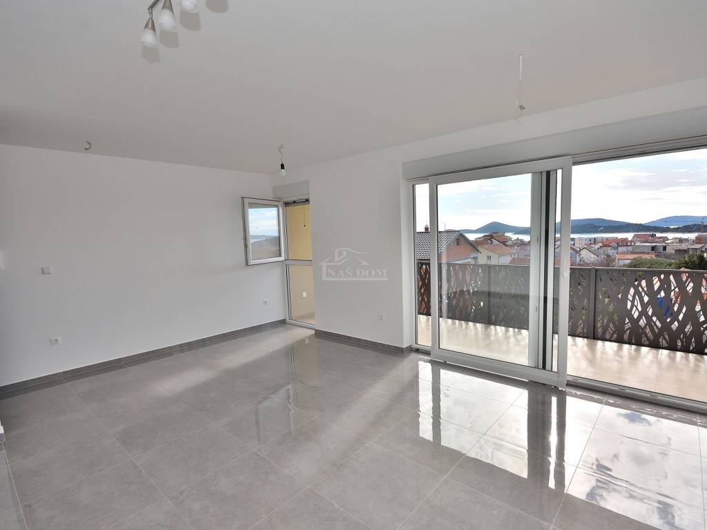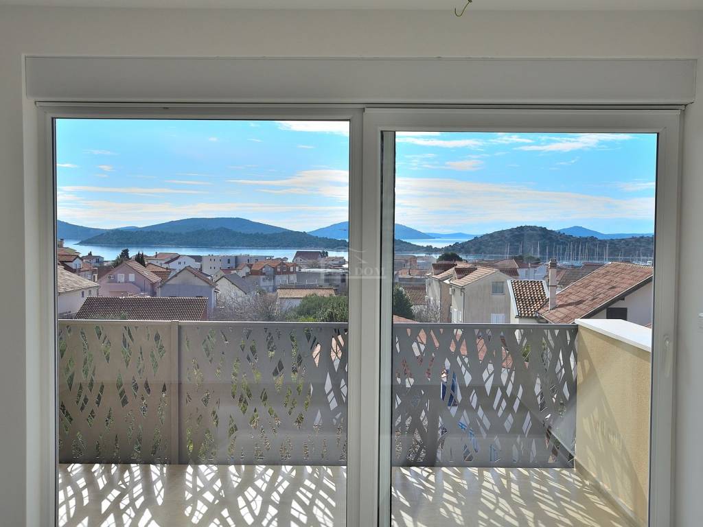 TRIBUNJ - an apartment with a sea view and surroundings is for sale. The apartment is located on the second floor of a small residential building constructed in 2022 and has a total net living area of 67.99 m2. It consists of an entrance, hallway, two bedrooms, bathroom, kitchen with dining area, and living room with a total area of 59.03 m2, and a covered terrace with an area of 10.22 m2. The apartment also includes one outdoor parking space with an area of 13.75 m2. The apartment is about 700 m from the town center and 950 m from the nearest beach. It is air-conditioned and unfurnished, and the equipment highlights include: security entrance door, high-quality joinery with mosquito nets, ceramic tiles, laminate flooring in the rooms, underfloor heating in the bathroom, kitchen, dining area, and living room...