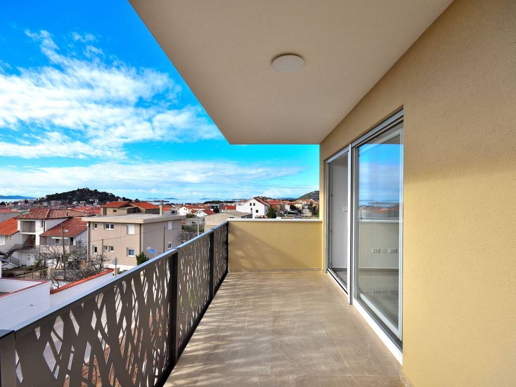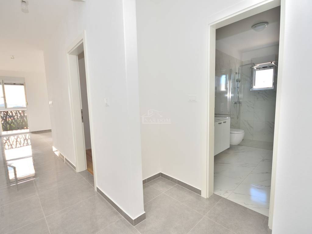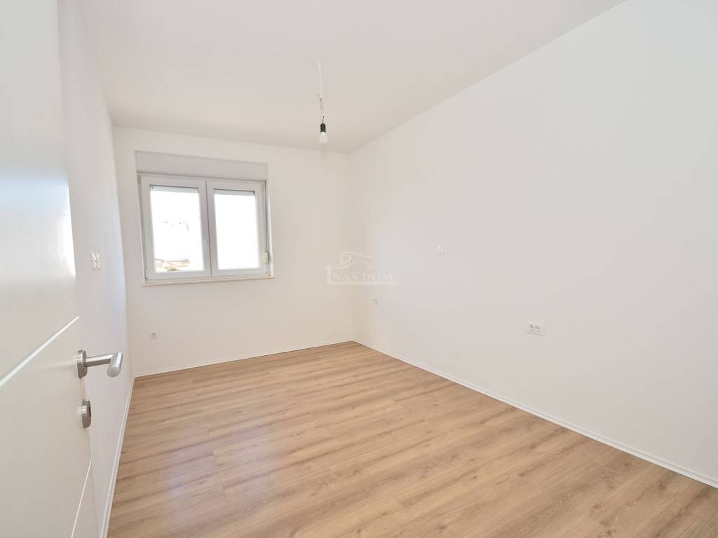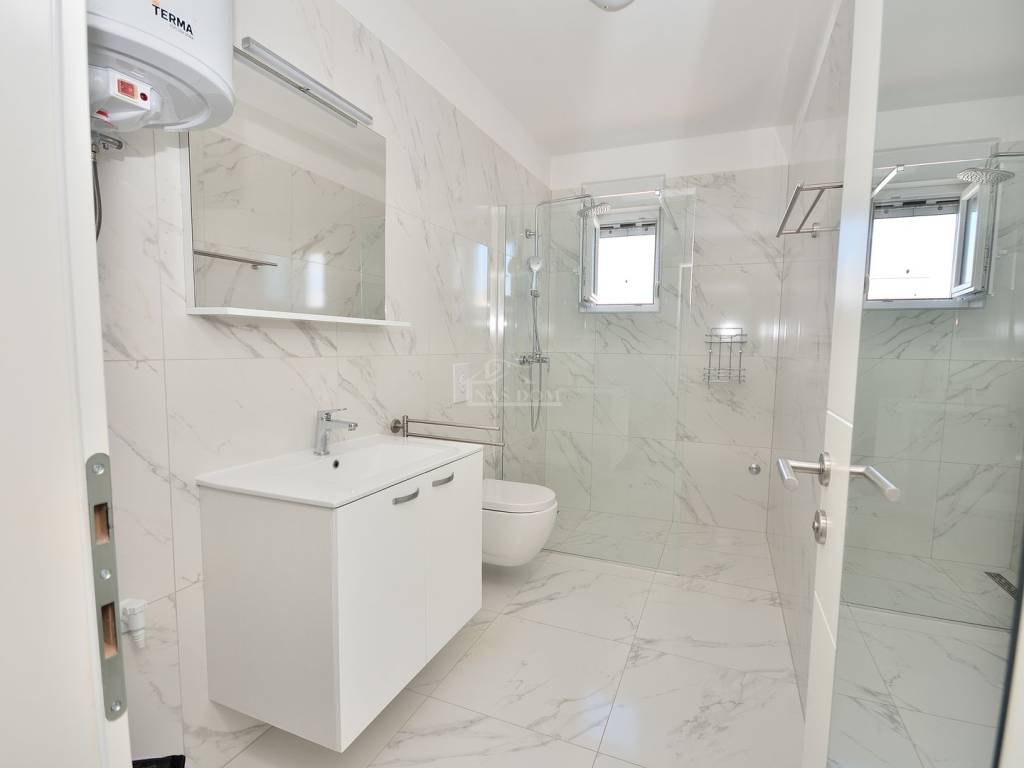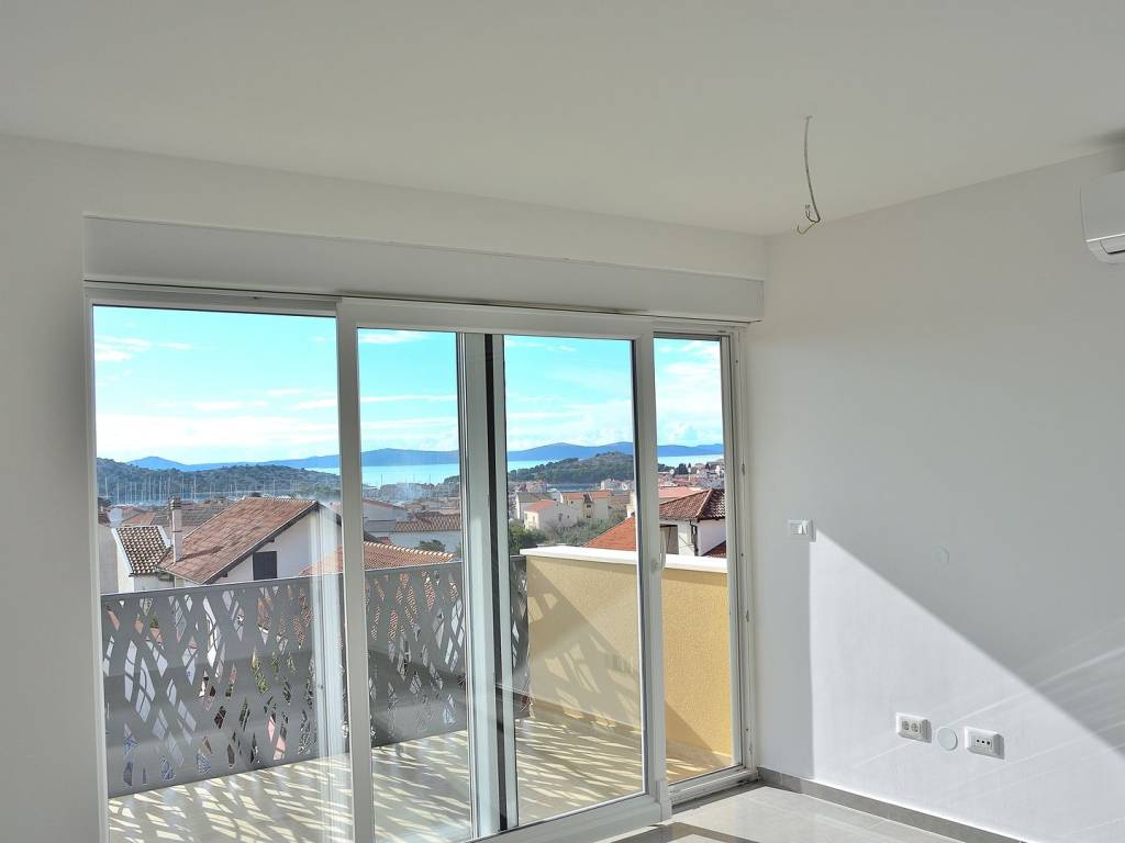 TRIBUNJ - an apartment with a sea view and surroundings is for sale. The apartment is located on the second floor of a small residential building constructed in 2022 and has a total net living area of 67.99 m2. It consists of an entrance, hallway, two bedrooms, bathroom, kitchen with dining area, and living room with a total area of 59.03 m2, and a covered terrace with an area of 10.22 m2. The apartment also includes one outdoor parking space with an area of 13.75 m2. The apartment is about 700 m from the town center and 950 m from the nearest beach. It is air-conditioned and unfurnished, and the equipment highlights include: security entrance door, high-quality joinery with mosquito nets, ceramic tiles, laminate flooring in the rooms, underfloor heating in the bathroom, kitchen, dining area, and living room...