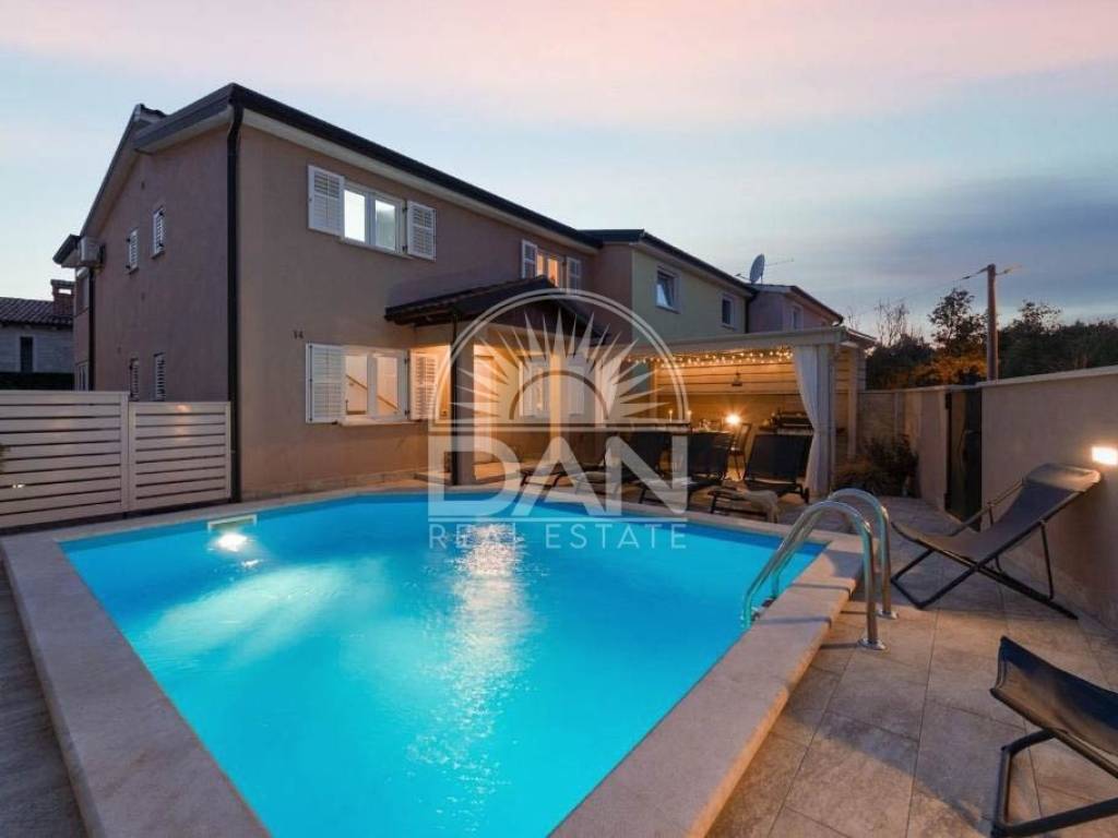 Semi-detached family house with four bedrooms for sale, located in a quiet village just 10 kilometers from Poreč and its beaches.