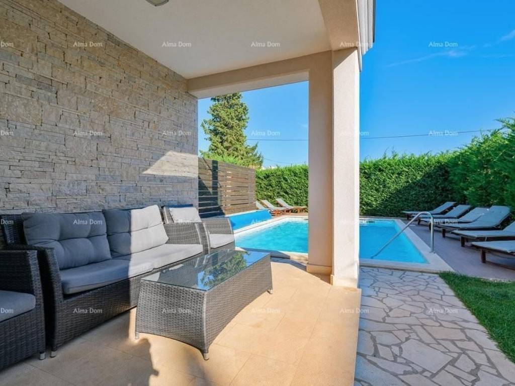 Standalone villa approximately 500 meters from the coast and the center of the town of Fažana. A specially designed and well-built villa, which consists of three apartments plus a studio apartment. Ground floor: an apartment with two bedrooms, two bathrooms, access to the garden, and a large swimming pool. Floors: two apartments, each with three bedrooms and two bathrooms, featuring two terraces that offer a panoramic view of the sea and the town. Video surveillance is installed. The landscaped yard includes a swimming pool and parking spaces. Info: +385 91 611 5706 Contact: +385 98 420 885 azra@almadominvest.com