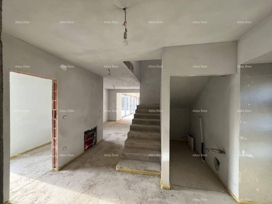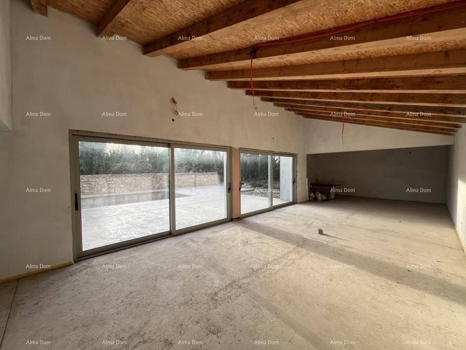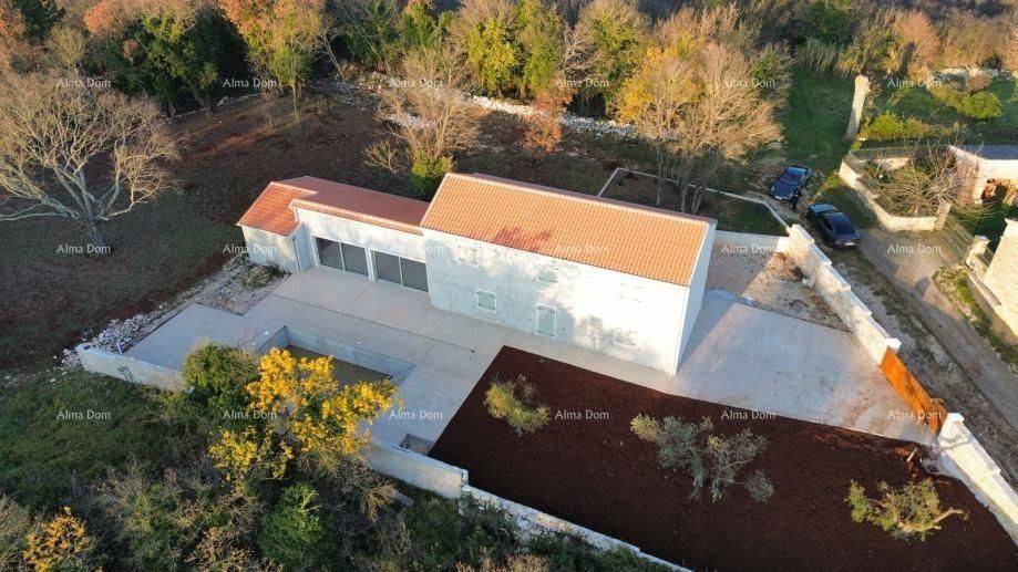 The detached villa, surrounded by a garden of 980 m2, is a true haven of peace and quiet, perfect for those looking for seclusion and privacy.The spacious and elegantly designed interior covers 262 m2 and consists of 4 bedrooms, each with a bathroom, hallway, pantry, living room and kitchen with dining area.The living room includes a fireplace in the center and is the perfect place to relax.The villa"s outdoor spaces are equally impressive, with several covered and uncovered terraces providing ample space for alfresco dining, lounging and soaking up the sun.The central part of the outdoor space is intended for a private swimming pool, size 8 x 5 meters, and for an additional pleasant experience there will be a warm steam sauna.The garden is carefully maintained, with many Mediterranean plants and trees.Heating is provided under the floor with a heat pump, and cooling is provided by air conditioners.The villa is located near Grožnjan and far from several well-groomed pebble beaches in Kanegra (10 minutes away). With an excellent location and luxurious contents, this villa is the perfect choice for you.The building was built, a 10 cm thick facade was installed, plastered inside, all electricity, water, heating and video surveillance installations were installed.The environment is currently being cleaned up.The price of the villa includes all finishing surfaces - ceramics, wall painting, room doors, heat pump for heating sanitary water and floor heating, air conditioning in every room and living room, swimming pool with equipment, indoor sauna and outdoor hydromassage tub.This station has 5 parking spaces, covered and uncovered.It also has a storage shed and a garden house.For more information, please contact:Azra+385 91 6115706+385 98 420 885azra@almadominvest.com