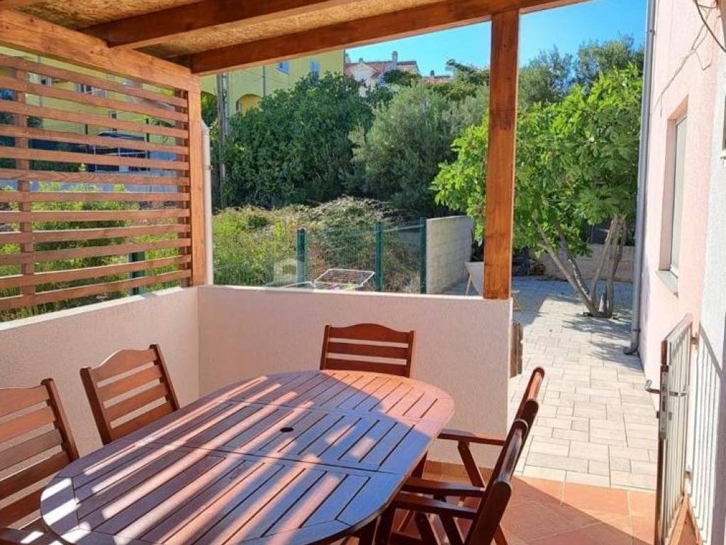 U izuzetno mirnom i uređenom dijelu Vodica prodaje se prekrasno uređen stan u prizemlju stambene zgrade, idealan za obiteljski život, odmor ili turistički najam. Stan se sastoji od dvije udobne spavaće sobe, moderne kupaonice, prozračnog dnevnog prostora s kuhinjom i blagovaonicom, iz kojeg se izlazi na natkrivenu terasu površine 20 m savršeno mjesto za jutarnju kavu i večernja druženja. Posebnu vrijednost ovoj nekretnini daje privatni vrt od 80 m, koji pruža osjećaj kuće uz sve prednosti stanovanja u zgradi. Stanu pripada i vlastito parkirno mjesto (br. 4) ispred objekta. Stan je u izvrsnom stanju, iznimno očuvan i ukusno uređen, bez potrebe za dodatnim ulaganjima. Kompletan namještaj uključen je u cijenu, što omogućuje trenutno useljenje ili brzi početak iznajmljivanja. Mirna lokacija, funkcionalan raspored i velik vanjski prostor čine ovu nekretninu rijetkom prilikom na tržištu. Idealna prilika za investiciju ili ugodan boravak na moru ključ u ruke. Za više informacija i dostupnost, slobodno nas kontaktirajte.