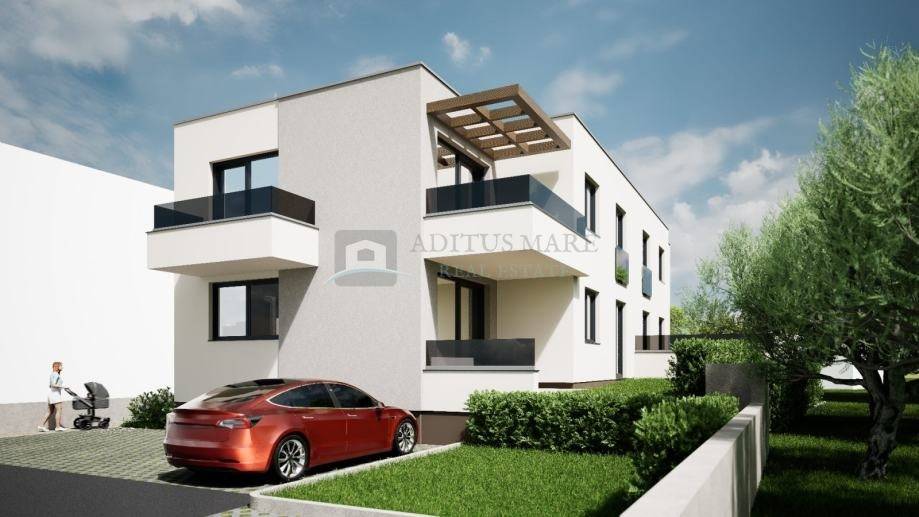 Prodaje se stan na prvom katu novogradnje u mirnom naselju Srima pored Vodica, na izvrsnoj lokaciji udaljenoj 200 metara od plaže i 300 metara od centra naselja. Zgrada se sastoji od četiri stambene jedinice, što osigurava privatnost i ugodan ambijent.